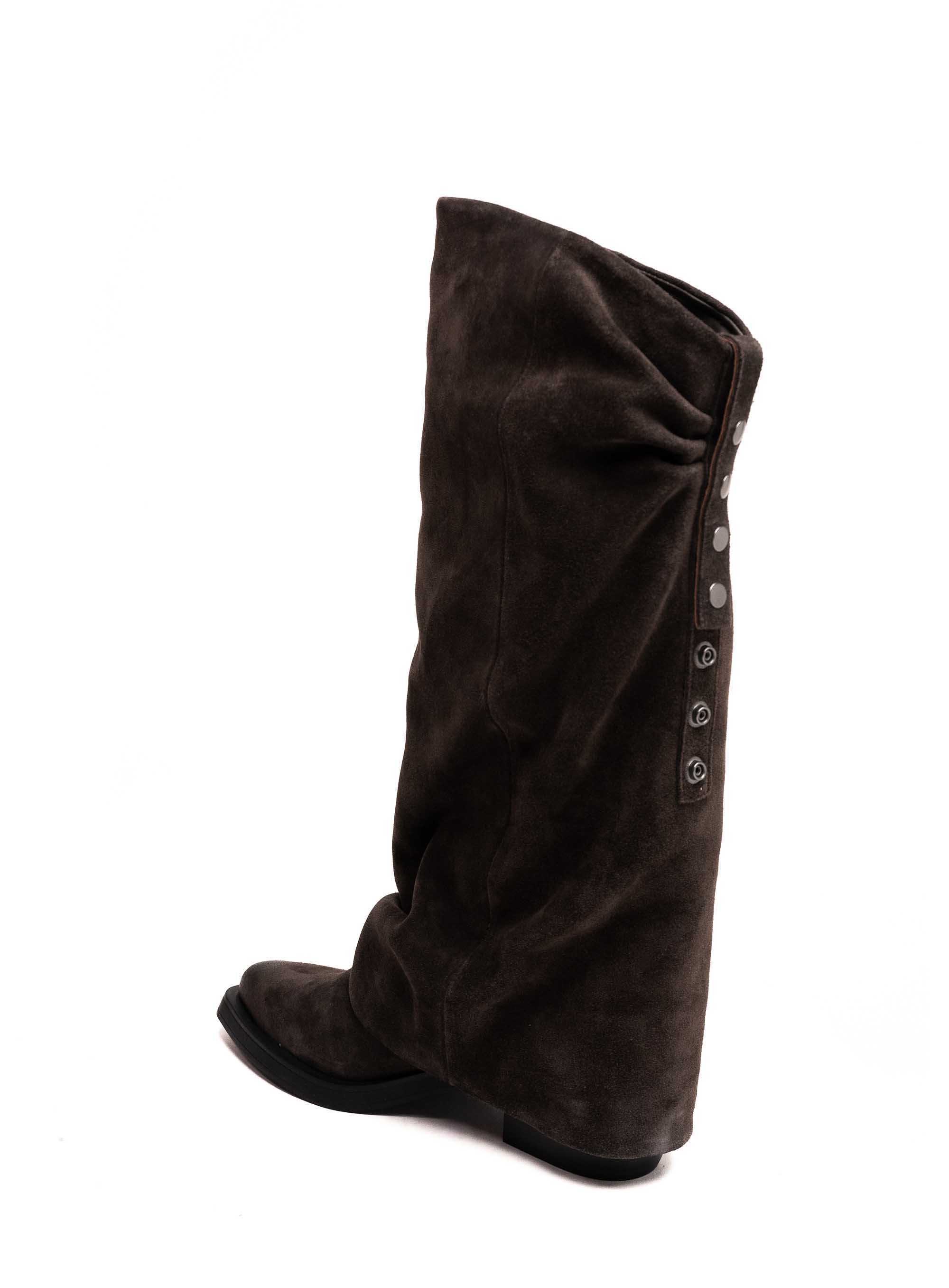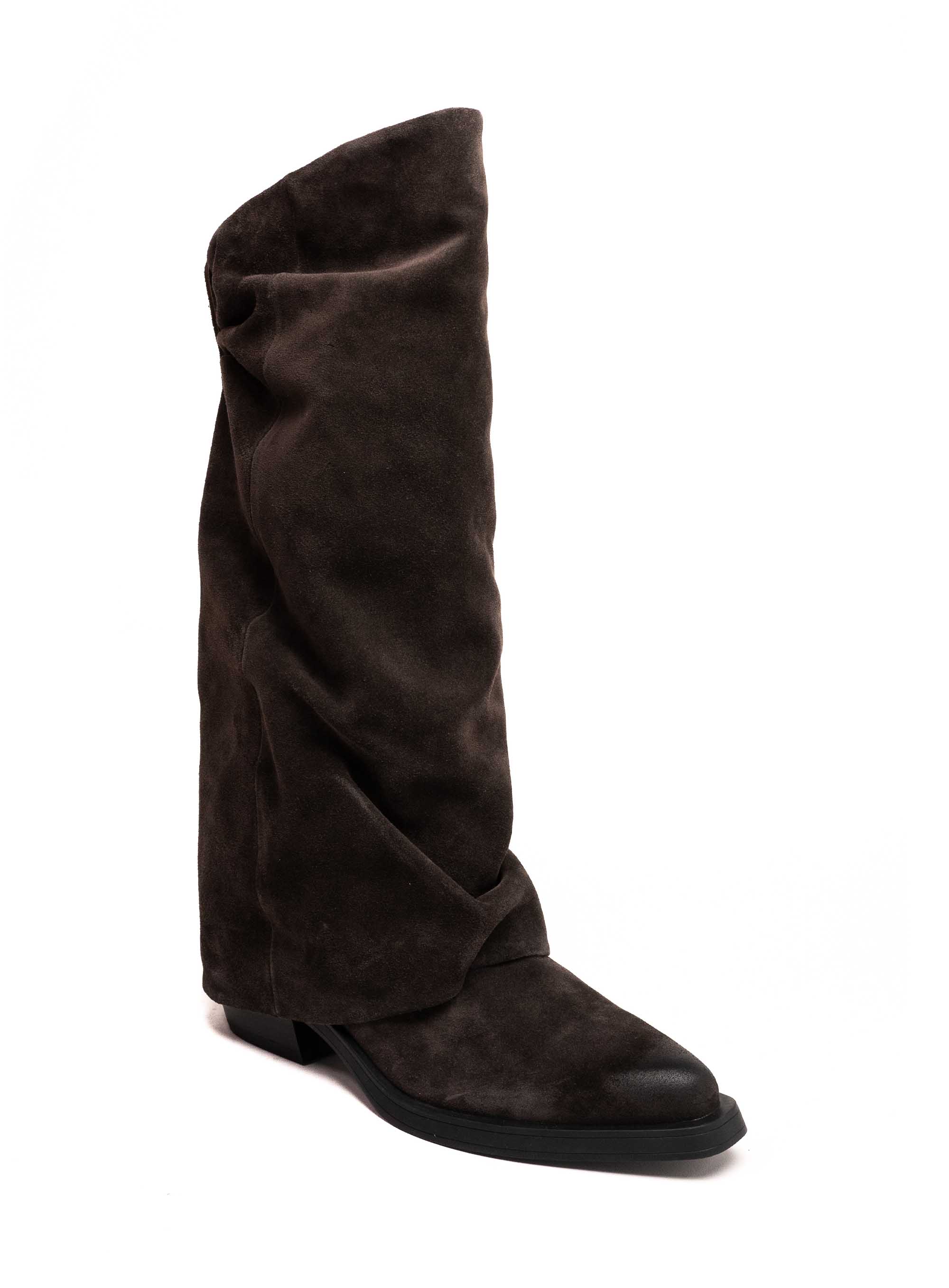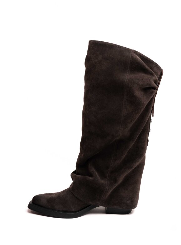 Stilski upečatljive ASH čizme izrađene su od mekane brušene kože i dizajnirane s opuštenim, ležerno naboranim gornjištem koje dodaje dozu nonšalantnog šarma.