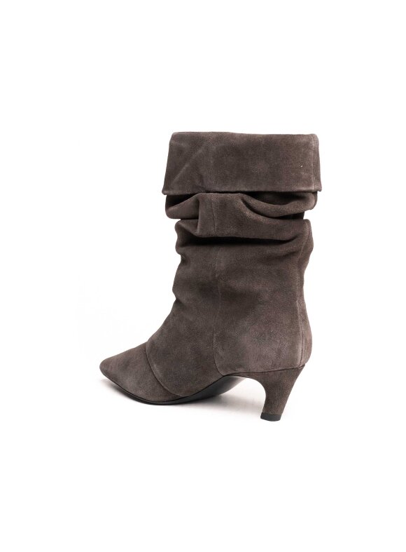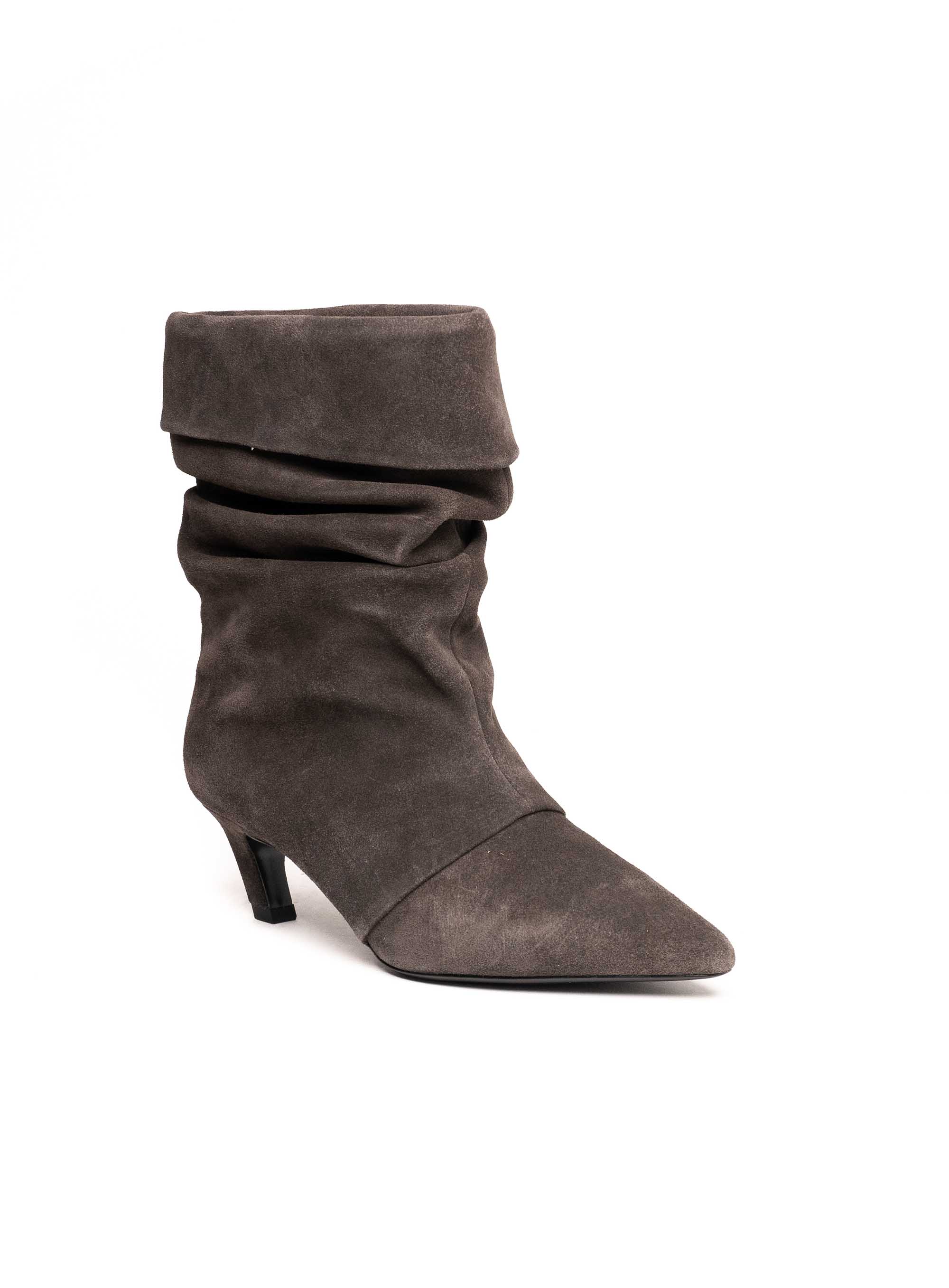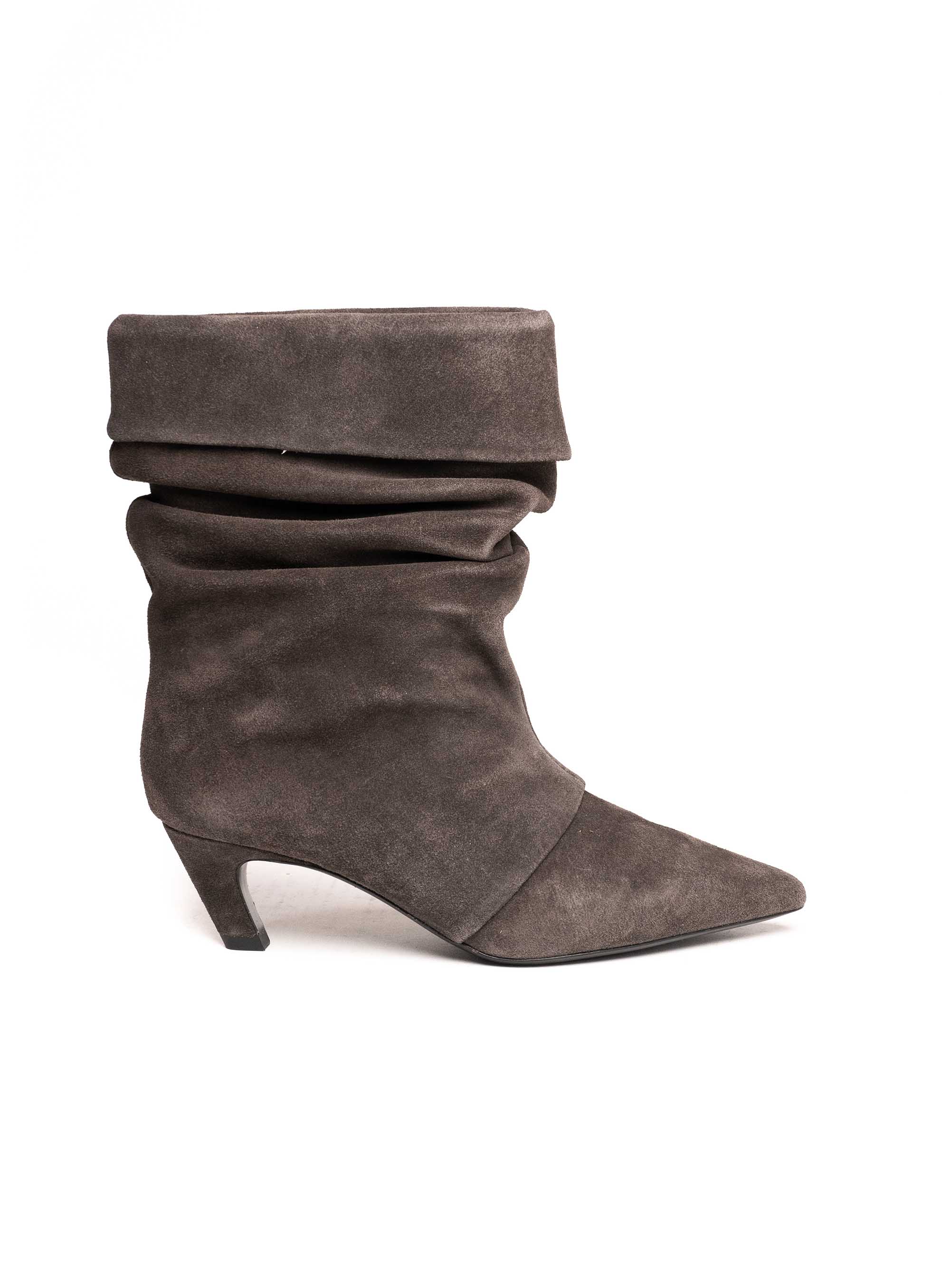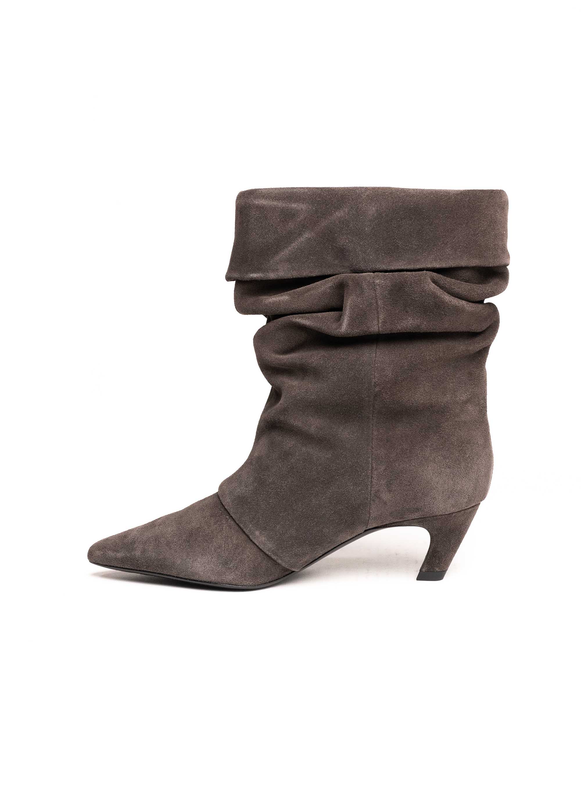 Ash gležnjače od brušene kože u toploj smeđoj nijansi donose savršenu kombinaciju boho i sofisticiranog stila. Široka opuštena sara s efektnim naborima i spuštenim rubom unosi casual eleganciju, dok špičasti vrh i stabilna srednje visoka potpetica pružaju ženstven i moderan izgled. Izrađene od kvalitetne kože, ove gležnjače pružaju udobnost i izdržljivost, idealne su za svakodnevno nošenje i kombiniranje uz suknje, haljine ili skinny traperice.