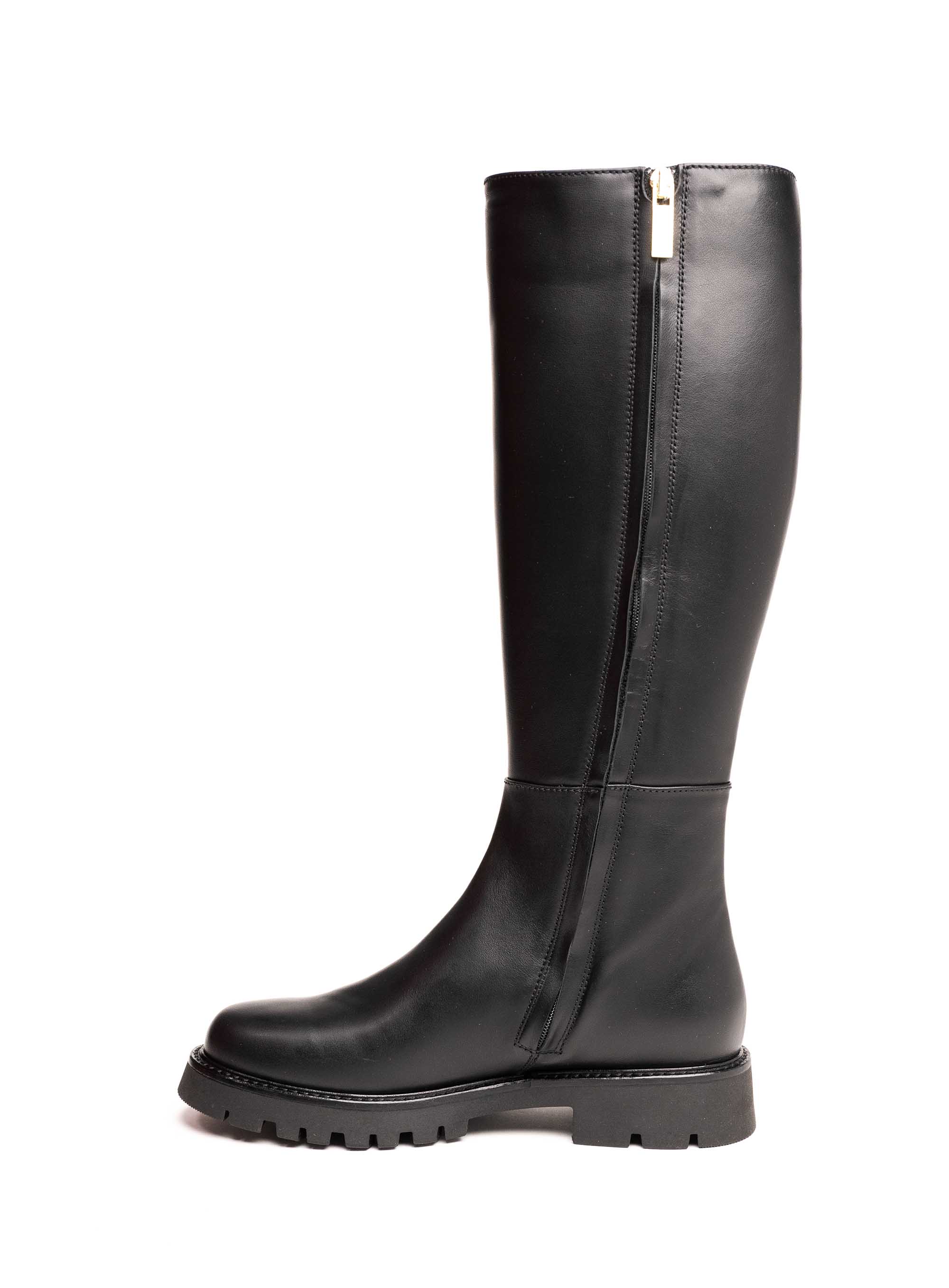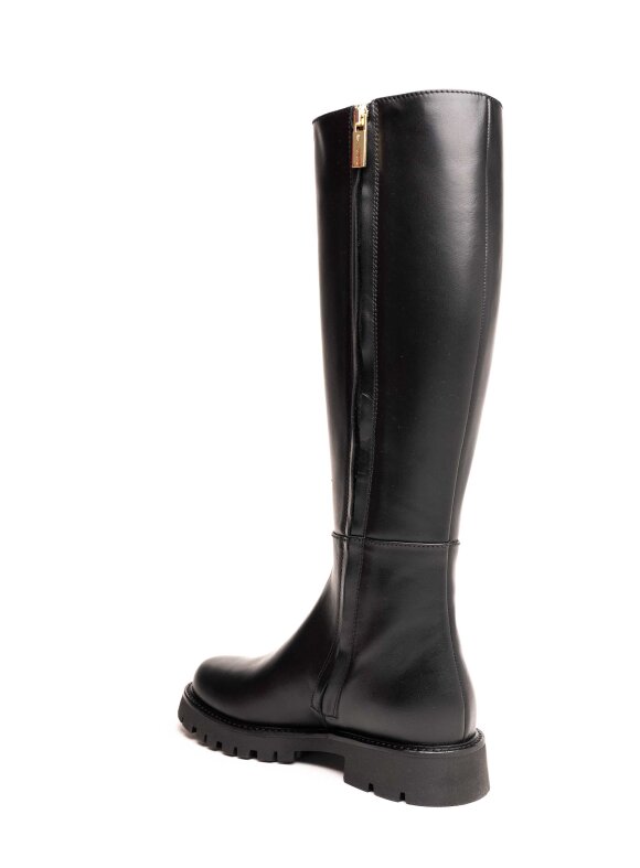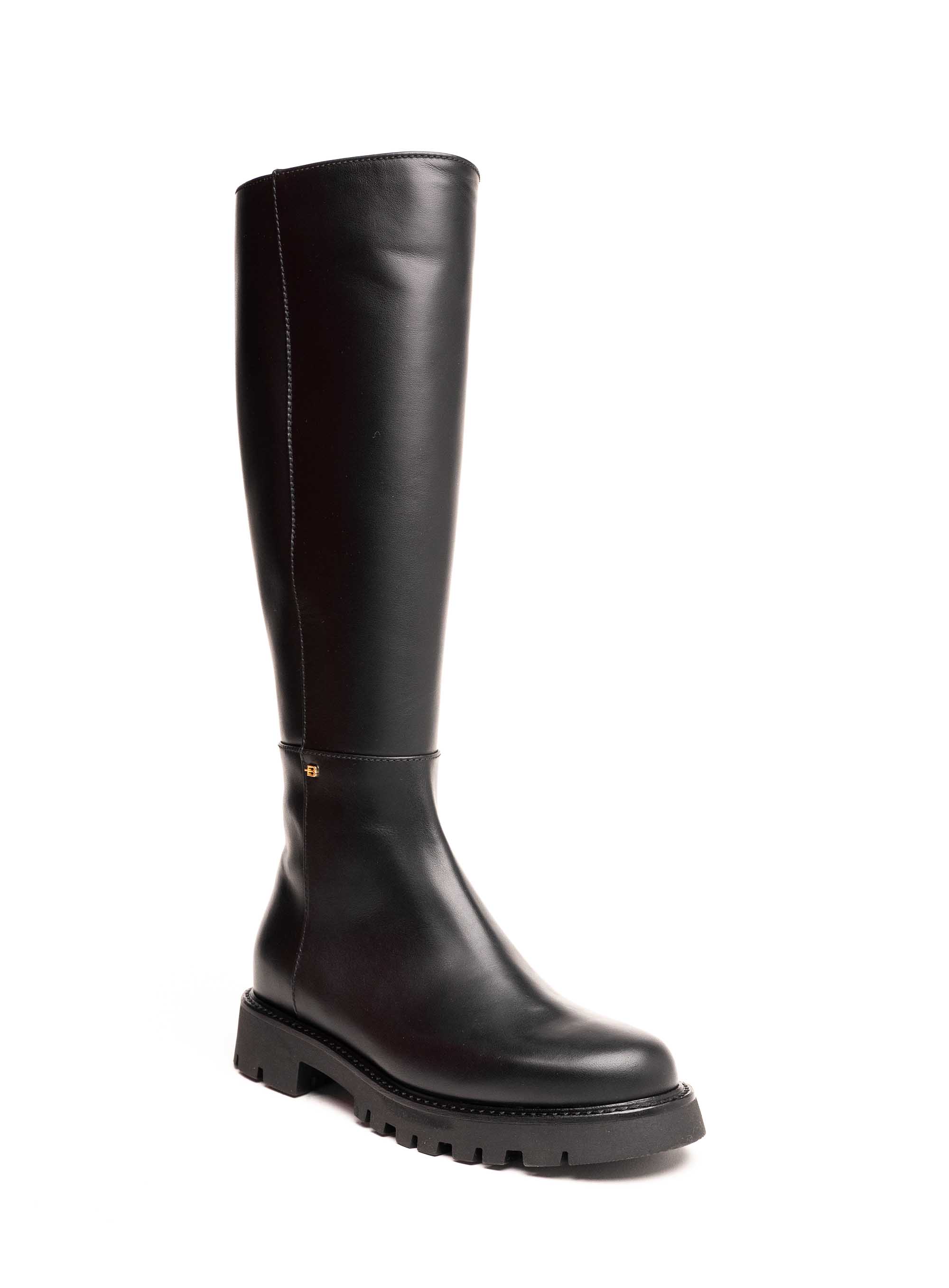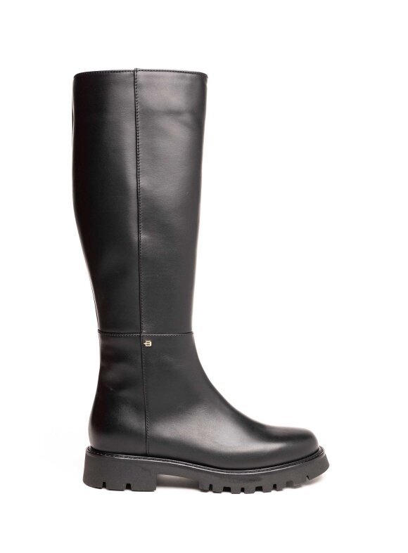 Baldinini crne čizme izrađene su od visokokvalitetne glatke kože, dizajnirane da pruže eleganciju i praktičnost u isto vrijeme. Minimalističke linije naglašene su malim zlatnim logom "B", dok robusni gumeni potplat osigurava stabilnost i udobnost pri hodanju. Ovaj bezvremenski model lako se uklapa u svakodnevne, poslovne i večernje kombinacije, čineći ga savršenim izborom za sezonu jesen/zima.