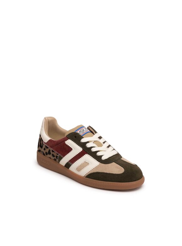 Izrađene od kombinacije brušene kože i tekstila, ističu se zanimljivom kombinacijom boja – maslinastom, bež, bordo i uzorkom u prirodnim tonovima.