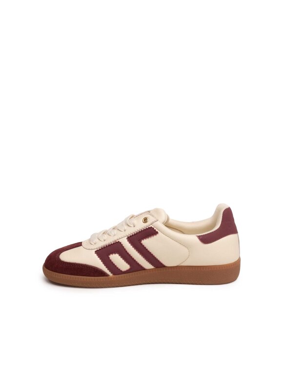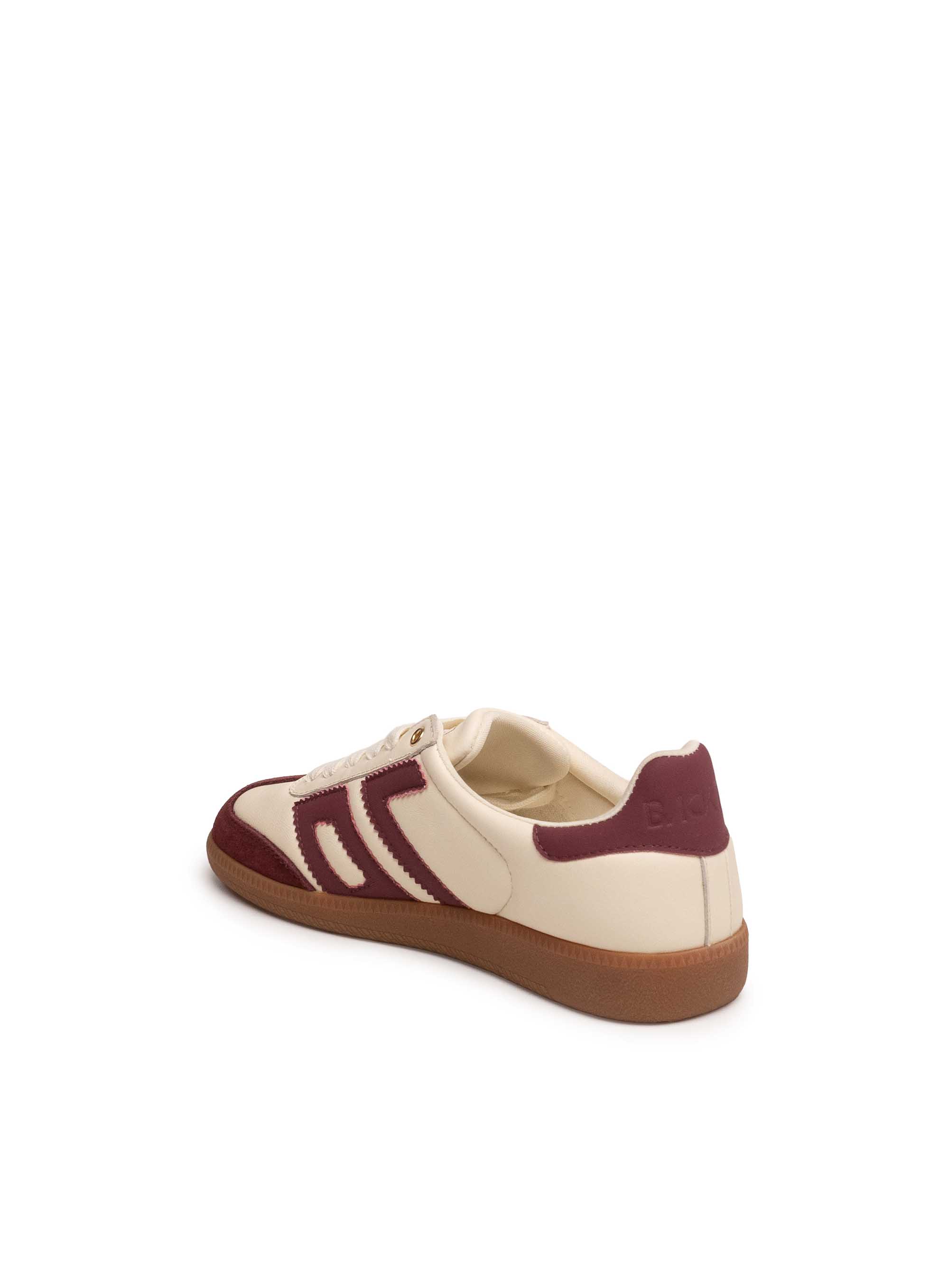 Kombinacija bež i bordo tonova stvara elegantan kontrast, dok detalji od brušene kože dodaju profinjenost i karakter.