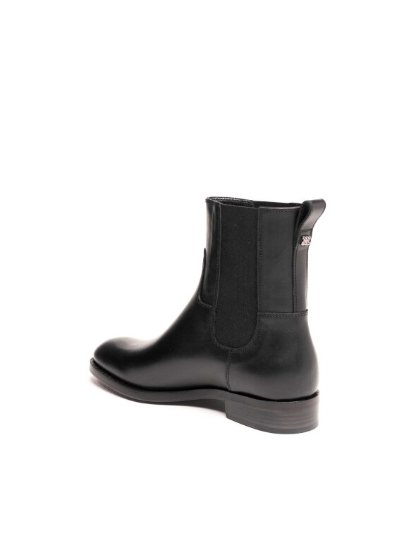 Casadei crne gležnjače izrađene su od vrhunske glatke kože i odišu elegancijom i profinjenošću. Klasičan dizajn s elastičnim bočnim umecima omogućuje jednostavno obuvanje i udobnost tijekom cijelog dana. Niska blok peta osigurava stabilnost i praktičnost, dok bezvremenske linije ovih gležnjača čine ih savršenim dodatkom svakoj garderobi – od poslovnih kombinacija do večernjih outfita.