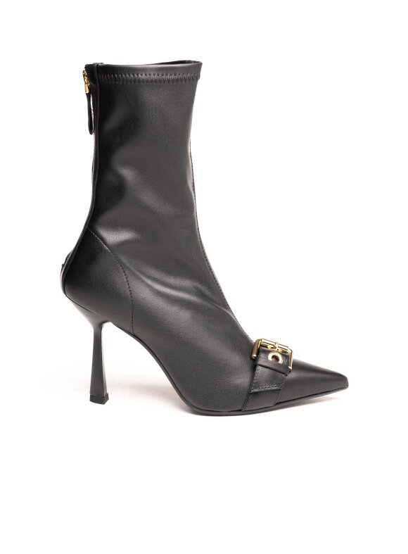Ove Chantal crne gležnjače savršeno spajaju eleganciju i moderni dizajn. Izrađene od kvalitetne kože, gležnjače se ističu elegantnom visokom potpeticom i sofisticiranom zlatnom kopčom s logotipom na prednjem dijelu.