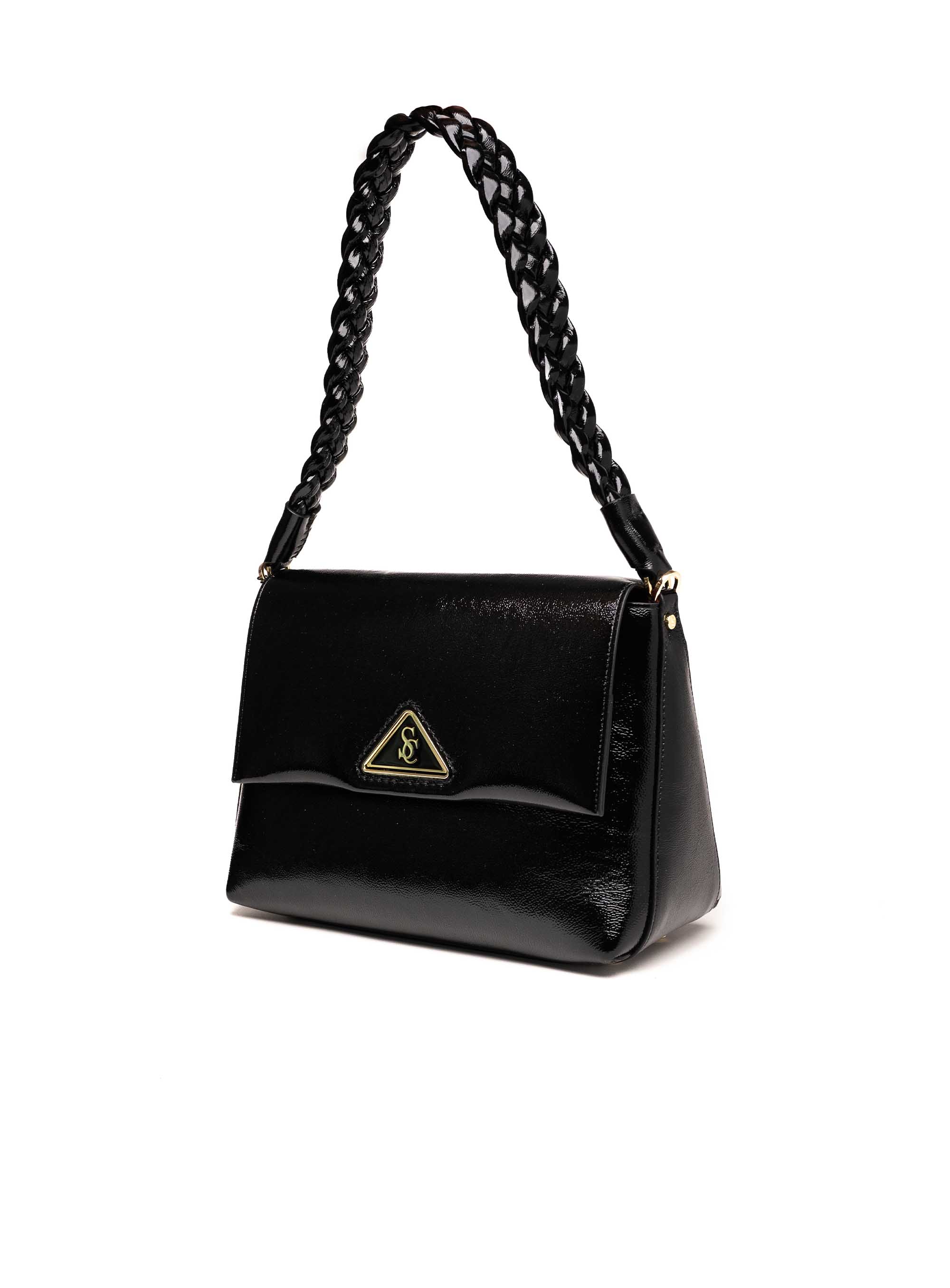 Ekskluzivna torba talijanskog brenda Carlo Salvatelli izrađena od kvalitetne kože u klasičnoj crnoj boji. Poseban detalj čini elegantna pletena ručka koja torbi daje jedinstven i luksuzan izgled. Zlatni logotip na prednjoj strani naglašava prepoznatljiv brendovski potpis. Idealna za večernje izlaske i posebne prilike.