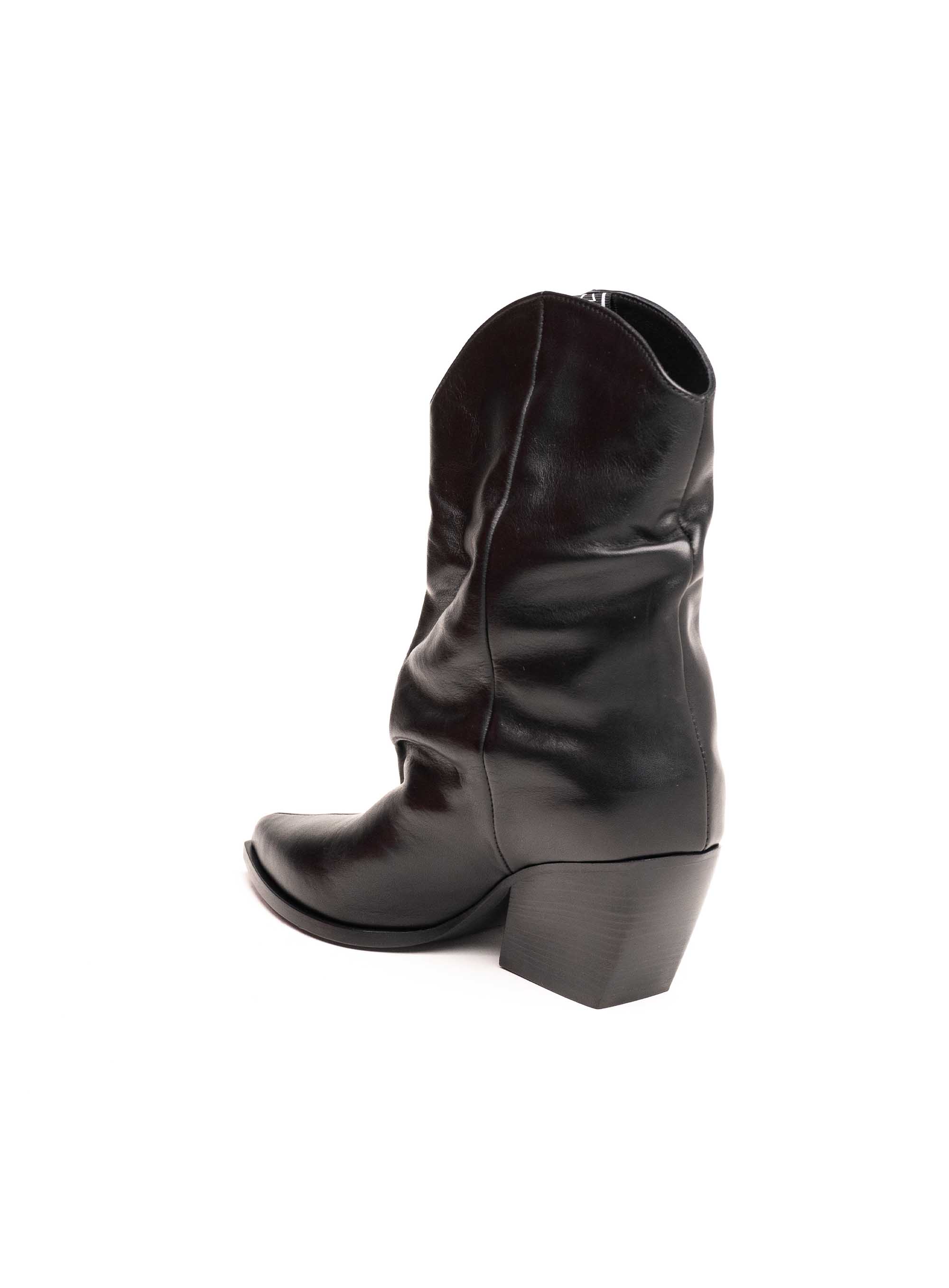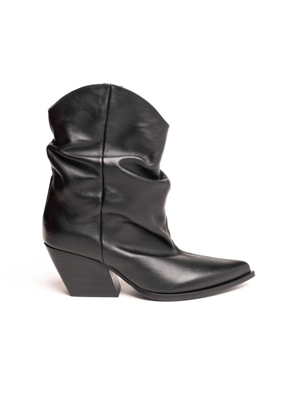 Istaknite svoj stil uz Elena Iachi crne kožne gležnjače koje spajaju talijansku eleganciju i udobnost s modernim western dizajnom. Izrađene od kvalitetne kože s naboranim efektom i špicastim vrhom, ove čizme odišu odvažnošću i sofisticiranošću. Stabilna peta srednje visine osigurava udobnost, dok minimalistički dizajn omogućava jednostavno kombiniranje s različitim modnim kombinacijama.