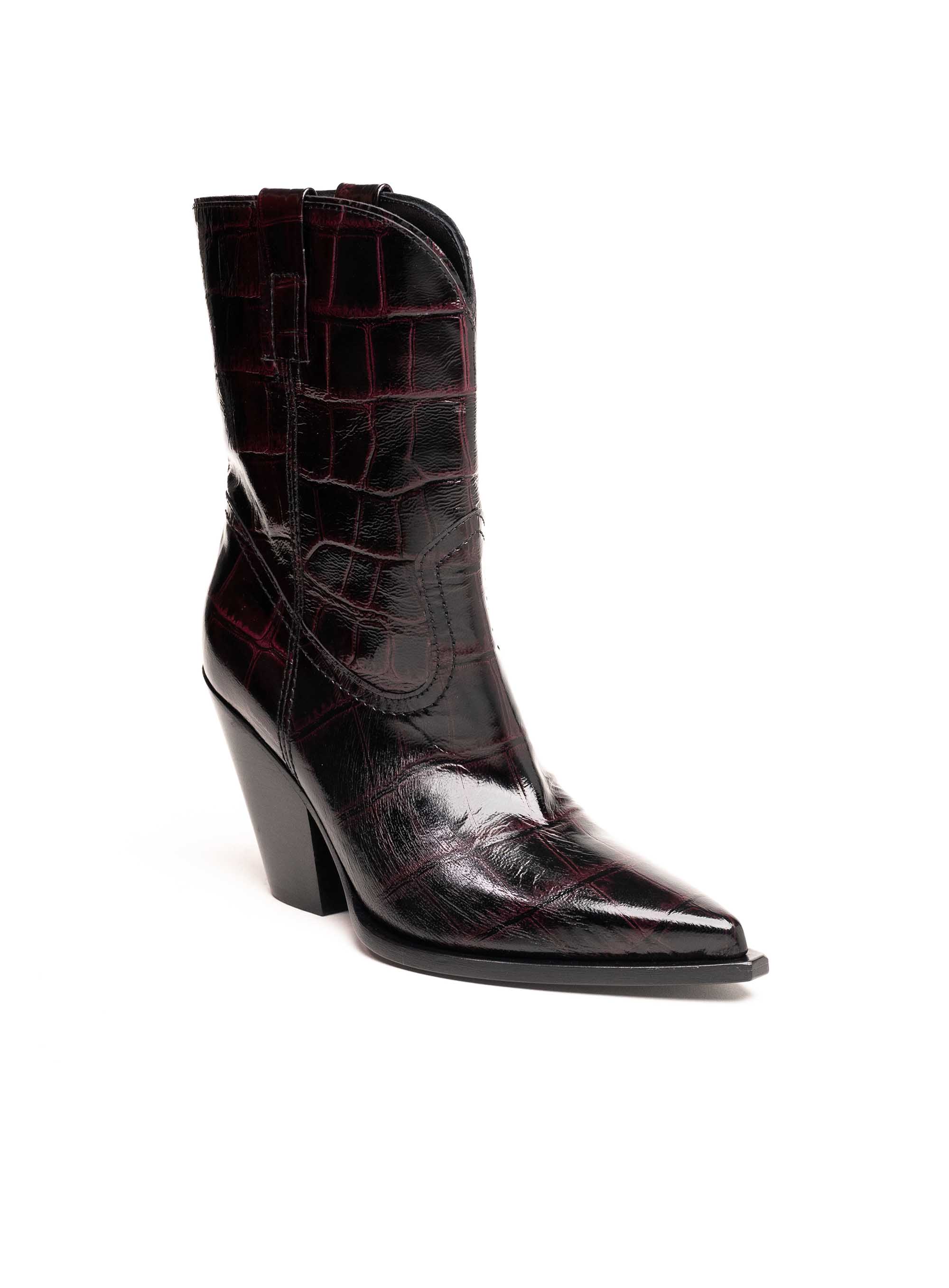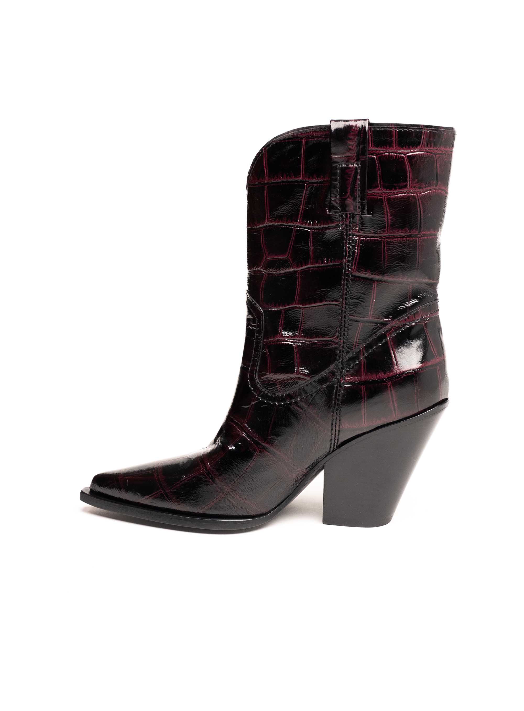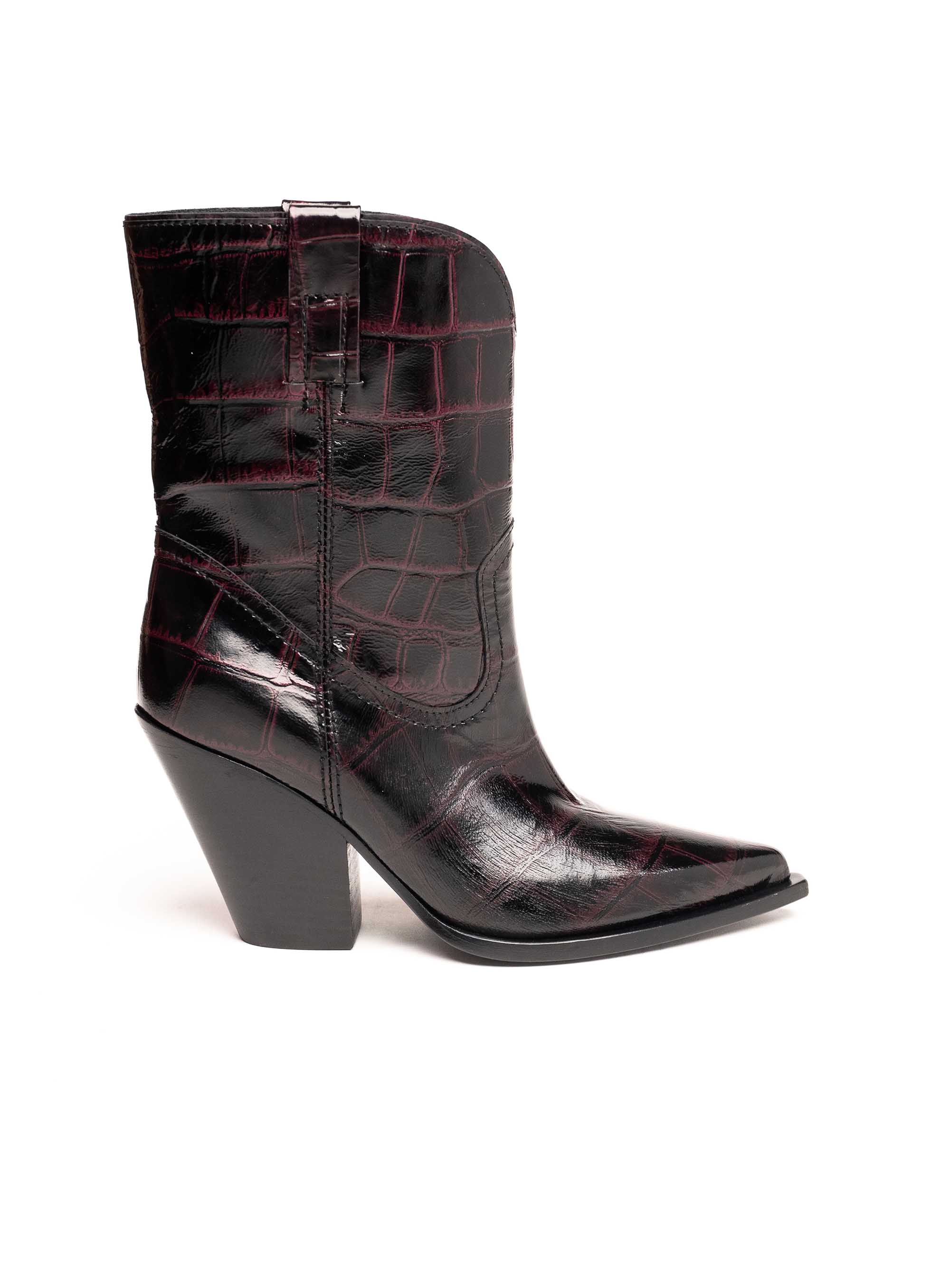 Unesite luksuz i odvažnost u svoje modne kombinacije uz Elena Iachi gležnjače s uzorkom. Izrađene od visokokvalitetne kože u crnoj boji s diskretnim ljubičastim odsjajem, ove čizme donose spoj sofisticiranosti i modernog western dizajna.Kosa peta osiguravaju elegantan izgled i udobnost pri nošenju.