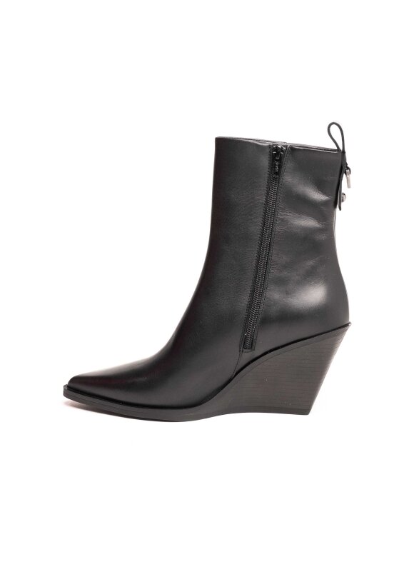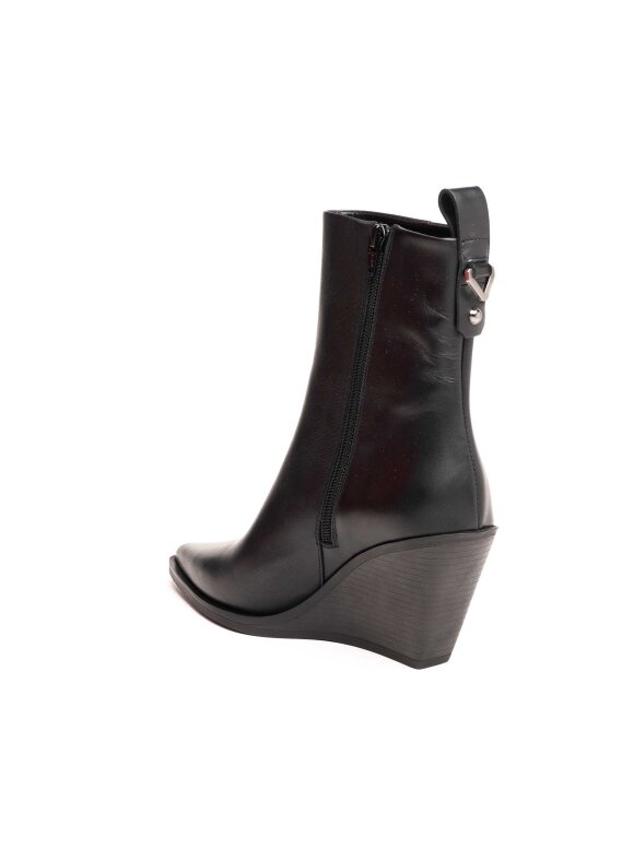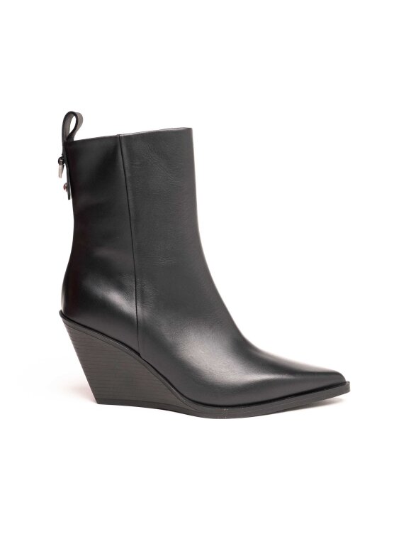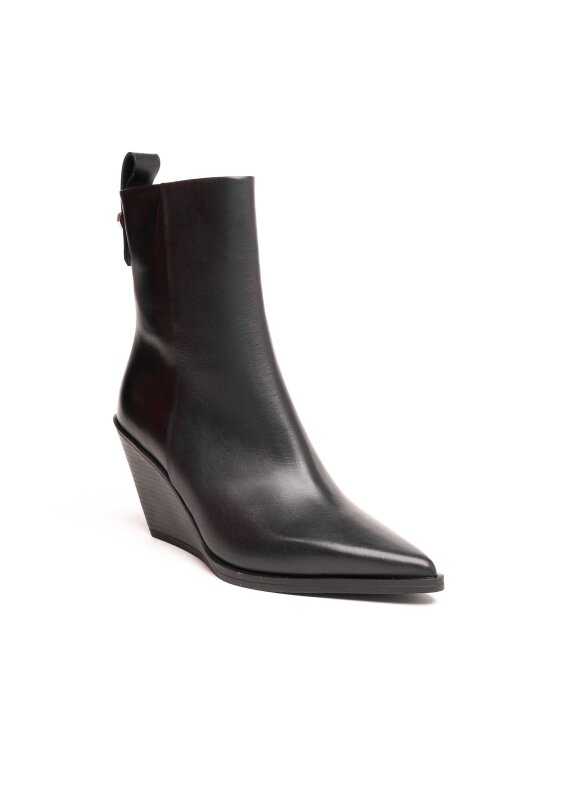Minimalističke i sofisticirane gležnjače izrađene od visokokvalitetne prirodne kože. Moderan dizajn s elegantnim vrhom naglašava ženstvenost, dok skrivena wedge potpetica pruža stabilnost i udobnost tijekom nošenja. Stražnji zatvarač olakšava obuvanje, a čiste linije čine ih svestranim modelom koji se lako uklapa u svakodnevne i večernje kombinacije.