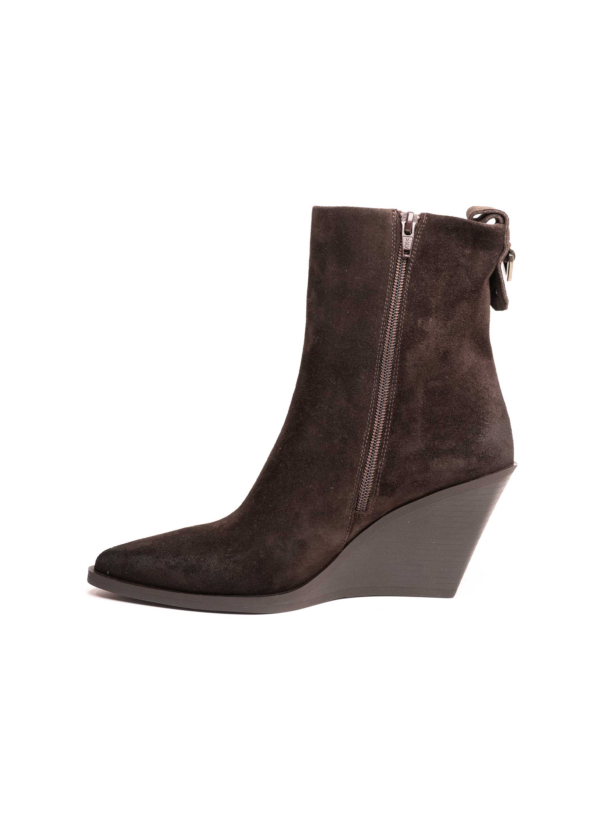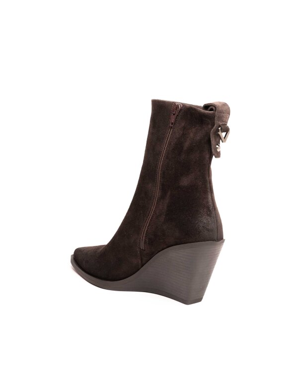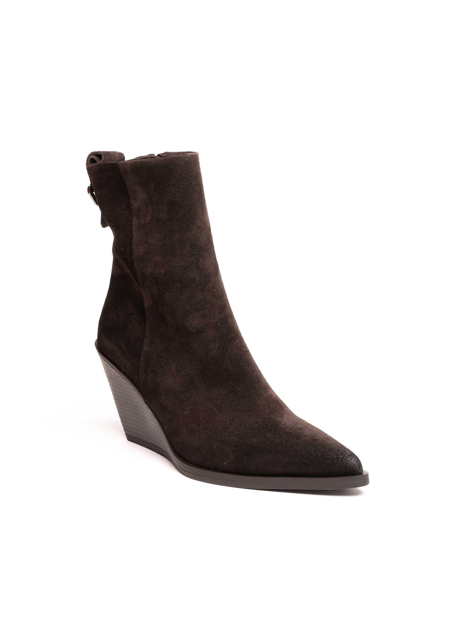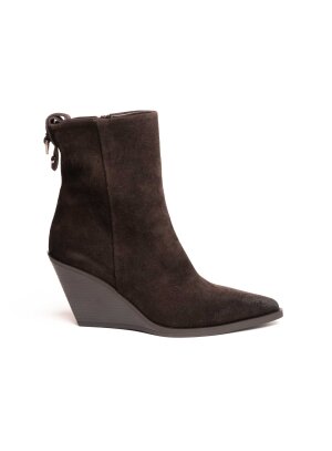 Trendi gležnjače izrađene od fine brušene kože koje spajaju eleganciju i udobnost. Moderan dizajn s prepoznatljivim vrhom naglašava ženstvenost, dok wedge potpetica pruža stabilnost i vizualno izdužuje figuru. Zatvarač na stražnjoj strani olakšava obuvanje, a jednostavne linije čine ih idealnim modelom za svakodnevne i večernje kombinacije.