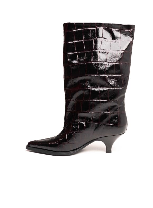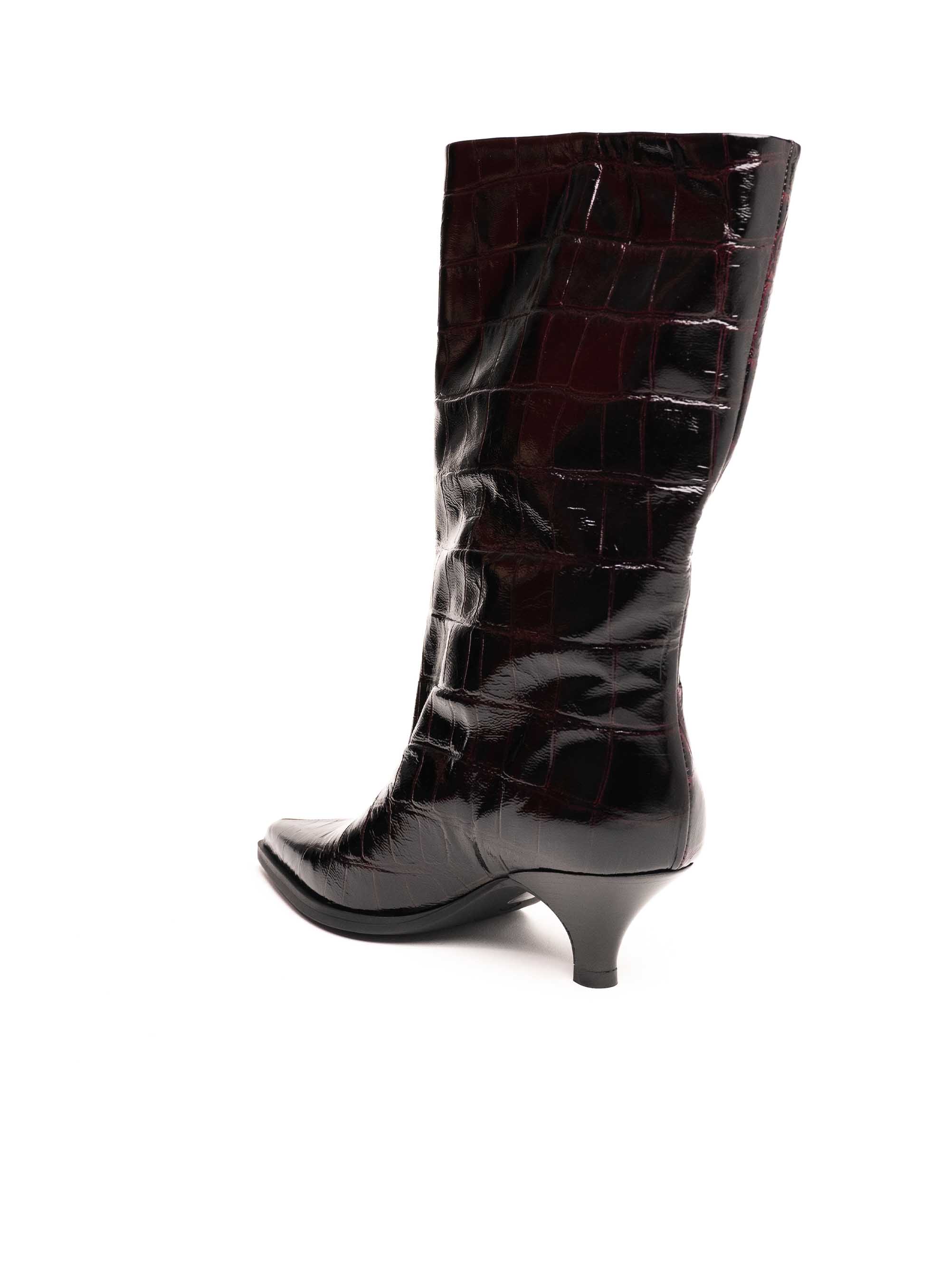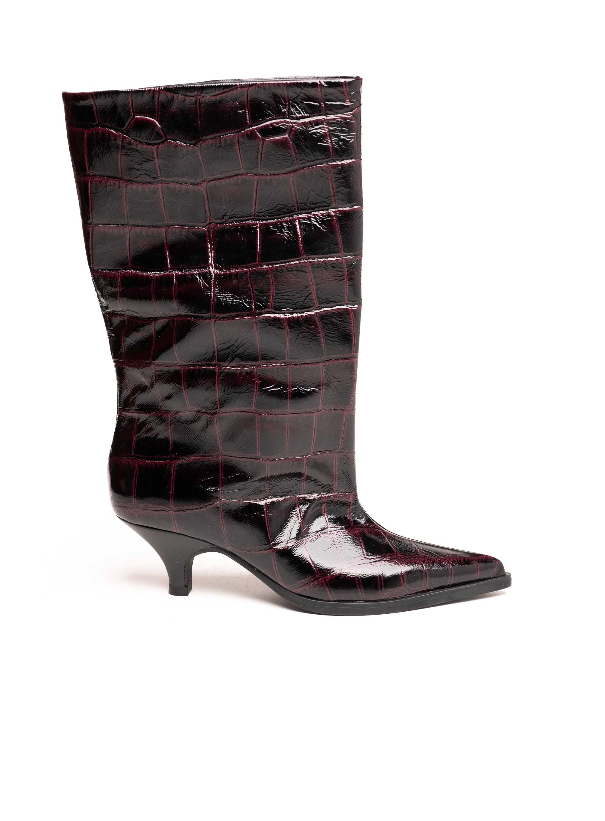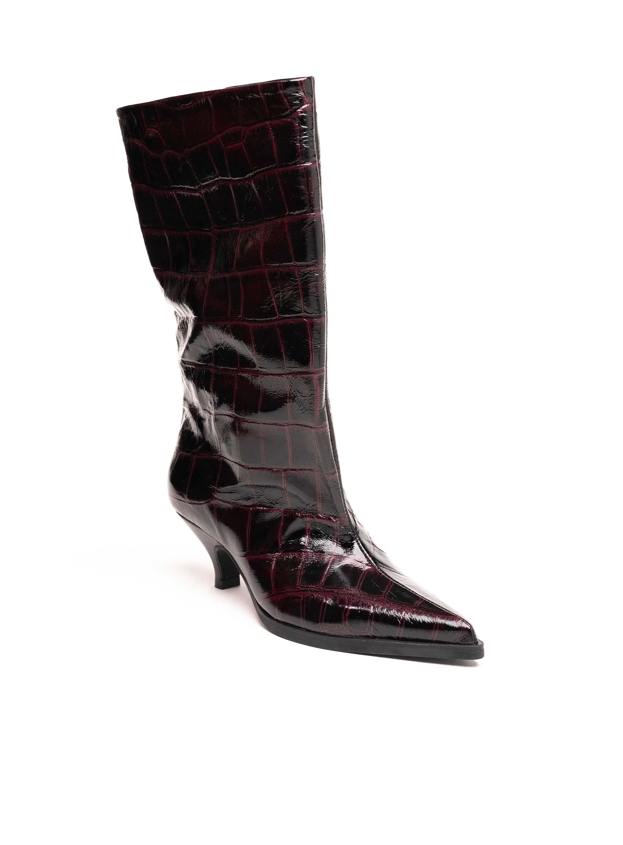 Ekstravagantne i elegantne gležnjače izrađene od kvalitetne kože s efektnim uzorkom. Ovaj model odlikuje se modernim dizajnom i niskom kitten potpeticom koja osigurava udobnost i ženstvenu siluetu. Sjajna završna obrada i upečatljiva tekstura čine ih statement komadom za posebne modne kombinacije.