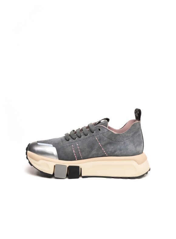 Ove FABI ženske tenisice spajaju moderan dizajn i vrhunsku udobnost, karakterističnu za talijansku obuću. Izrađene su od brušene kože u sivoj nijansi s kontrastnim detaljima i prepoznatljivim robustnim potplatom koji pruža iznimnu stabilnost i udobnost. Ružičasti dekorativni šavovi i metalizirani detalji daju tenisicama profinjen, ali suvremen izgled.