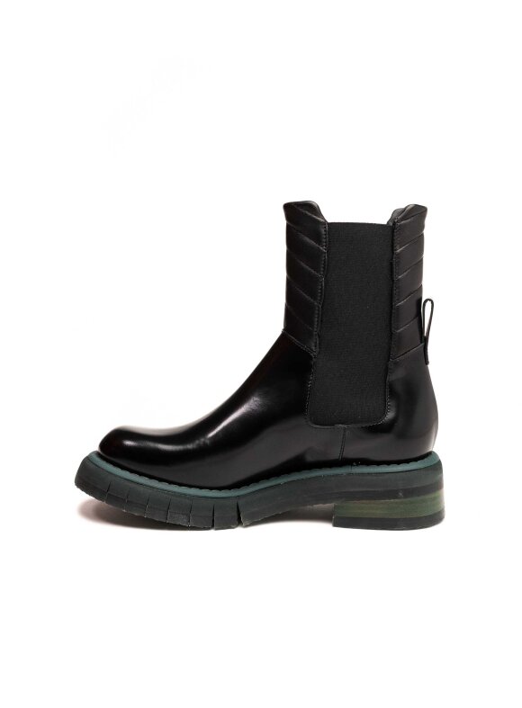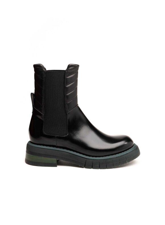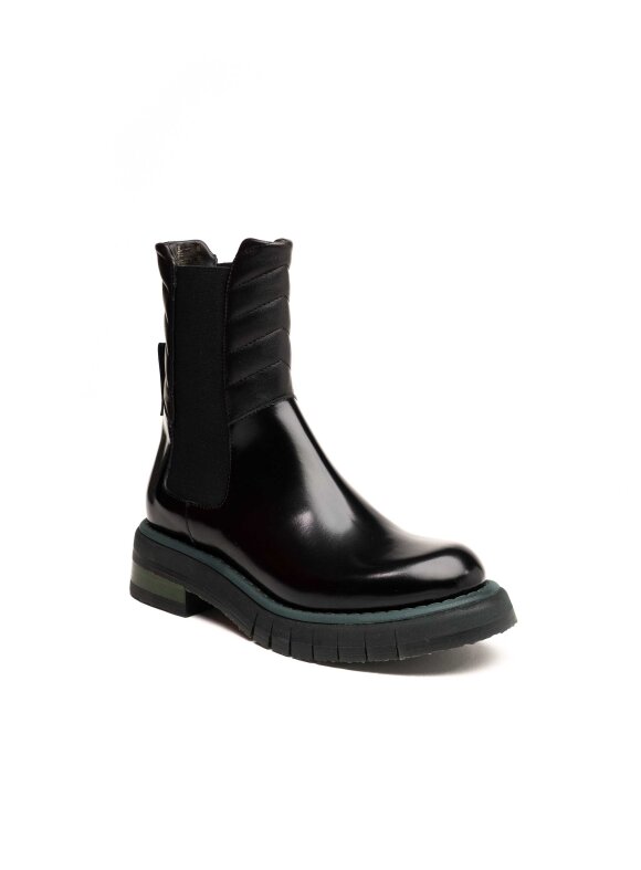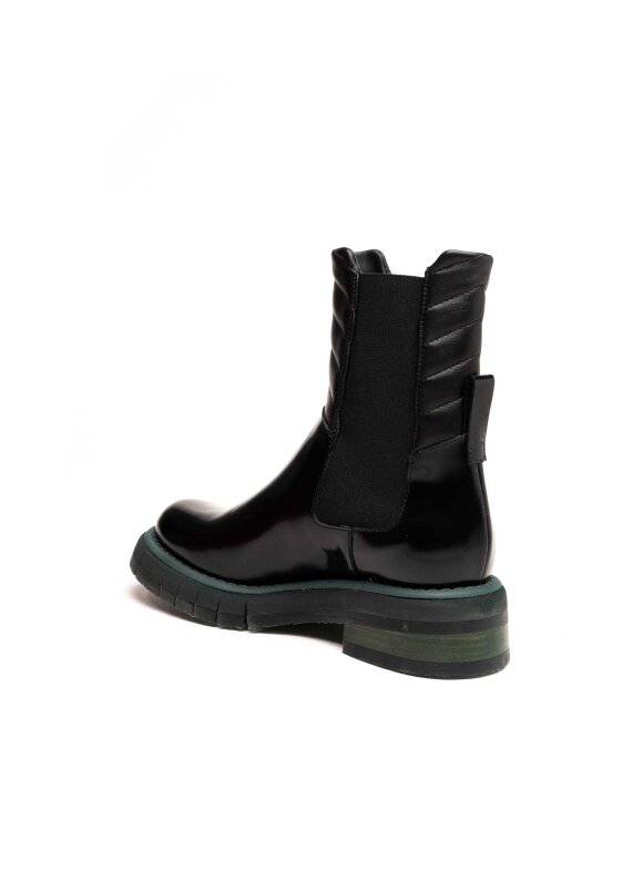 Ove FABI ženske gležnjače izrađene su od vrhunske sjajne kože u klasičnoj crnoj boji, a odlikuje ih moderan i urban dizajn s robusnim gumenim potplatom u tamnozelenoj nijansi. Elastične bočne trake omogućuju jednostavno obuvanje i savršeno pristajanje uz nogu, dok mekano postavljena unutrašnjost pruža udobnost pri svakom koraku.