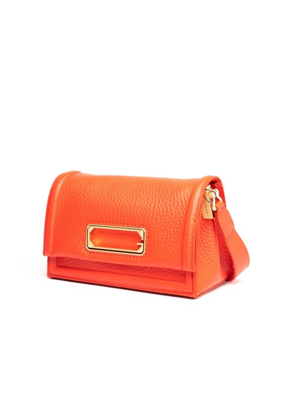 Elegantna narandžasta torbica izrađena od fine kože sa zrnastom teksturom donosi svježinu i moderan izgled svakoj kombinaciji. Zlatni metalni detalji naglašavaju luksuzan karakter modela, dok praktičan oblik omogućava lako kombiniranje u dnevnim i večernjim prilikama. Savršen modni dodatak za dame koje žele istaknuti svoj stil s dozom odvažnosti i elegancije.
