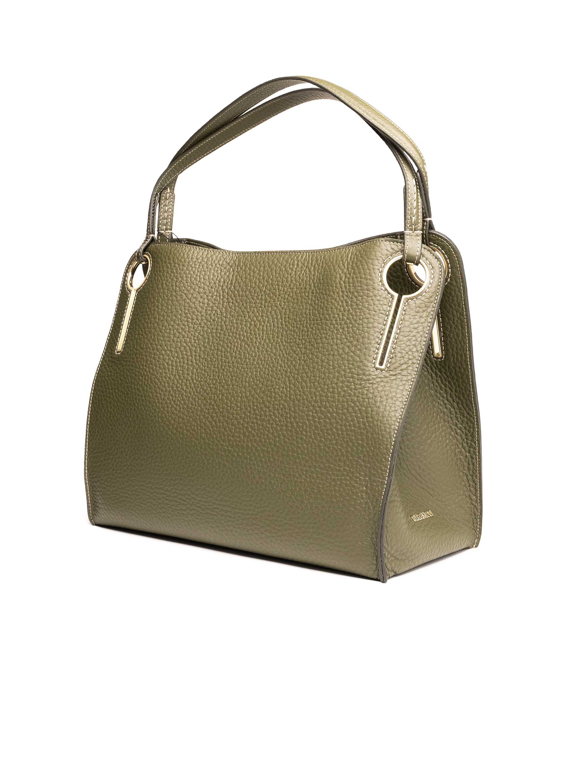 Ova elegantna torba izrađena je od kvalitetne kože s izraženom teksturom, u modernoj maslinasto-zelenoj nijansi. Prostran pravokutni oblik čini je savršenim izborom za svakodnevne kombinacije, dok dvostruke ručke omogućuju praktično nošenje u ruci ili preko ramena. Metalni detalji u zlatnoj boji diskretno naglašavaju sofisticiran dizajn i daju torbi luksuzan završni izgled.