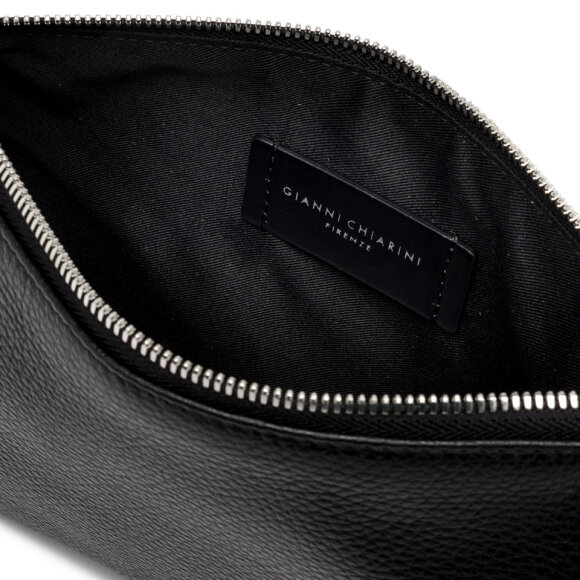 Gianni Chiarini crna crossbody torba od mekane kože donosi minimalistički i elegantan dizajn. Pravokutnog oblika s praktičnim patentnim zatvaračem i dugim remenom, ova torba savršena je za nošenje preko ramena ili crossbody stil.
