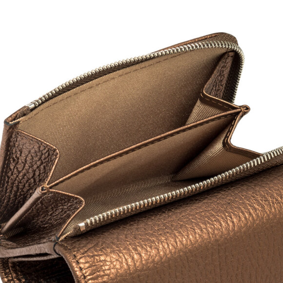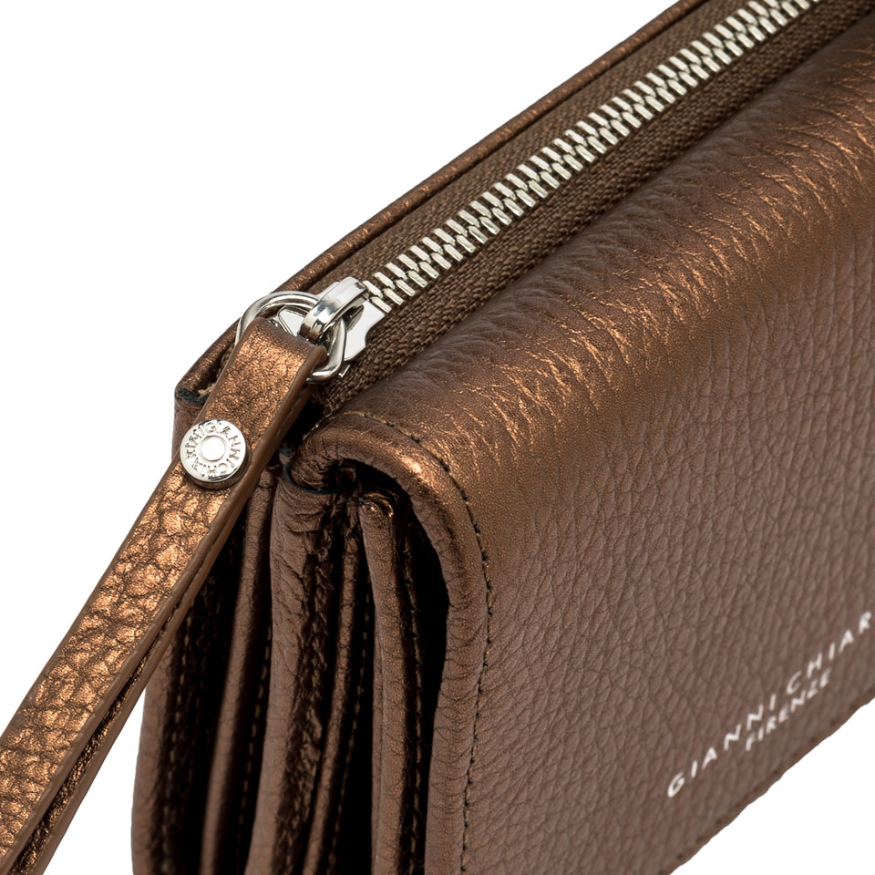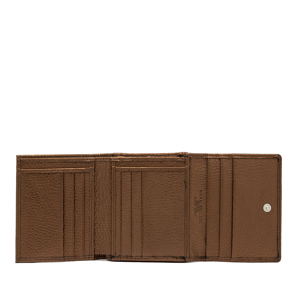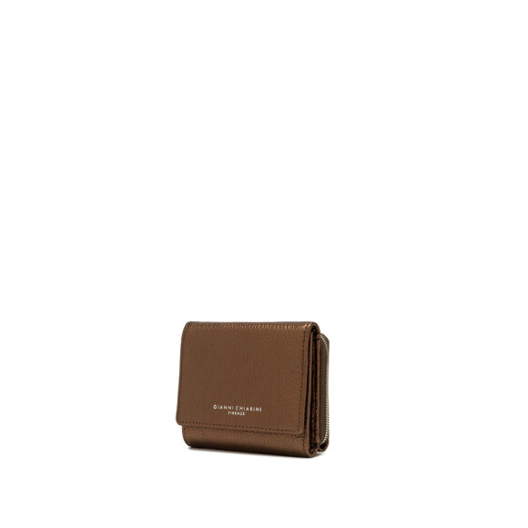 Ovaj prekrasni Gianni Chiarini novčanik izrađen je od visokokvalitetne prirodne kože s izraženom zrnatom teksturom. Njegova brončano-smeđa nijansa daje mu profinjen, moderan izgled koji se lako uklapa uz različite stilove.