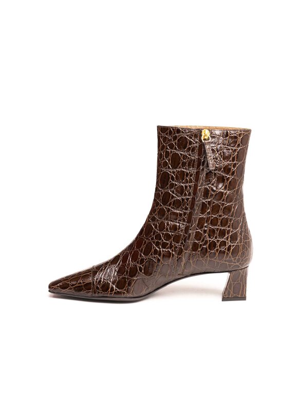 Istaknite sofisticiranost i bezvremensku eleganciju uz smeđe kožne gležnjače s efektom kroko kože. Dizajnirane za žene koje traže luksuz, kvalitetu i prepoznatljiv stil, ove čizme savršeno spajaju glamur i praktičnost.Ove smeđe luksuzne gležnjače s kroko efektom nisu samo obuća – one su modni statement koji podiže svaku kombinaciju i naglašava sofisticiranost vašeg stila.