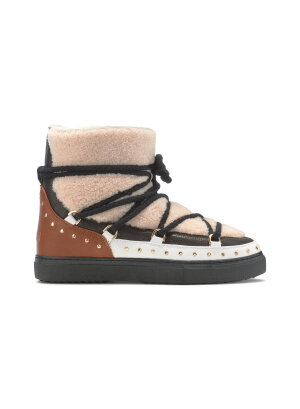 Curly Rock Inuikii Gležnjače- unesite dašak luksuza i topline u svoj zimski stil s Inuikii gležnjačama. Model izrađen od kombinacije kože, brušene kože i tople podstave od krzna pruža maksimalnu udobnost i zaštitu u hladnim danima. Dekorativni zlatni zakovice i kontrastne crne vezice daju ovim čizmicama moderan, urbani izgled. Zahvaljujući čvrstom gumenom đonu, osigurana je stabilnost i izdržljivost u svim vremenskim uvjetima.Savršen izbor za žene koje žele spoj udobnosti, topline i stila.