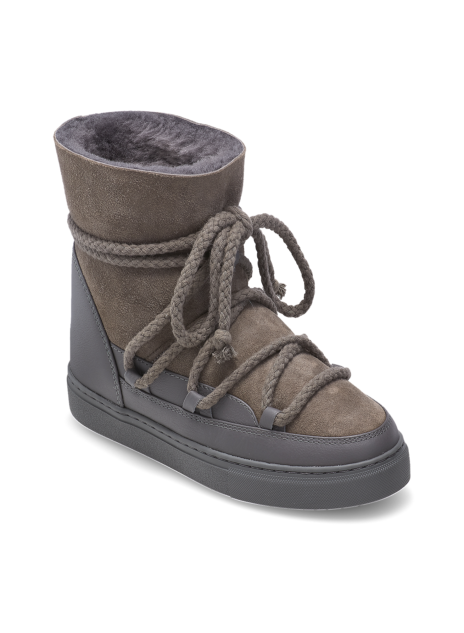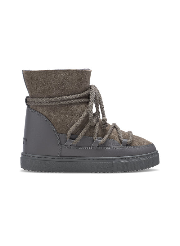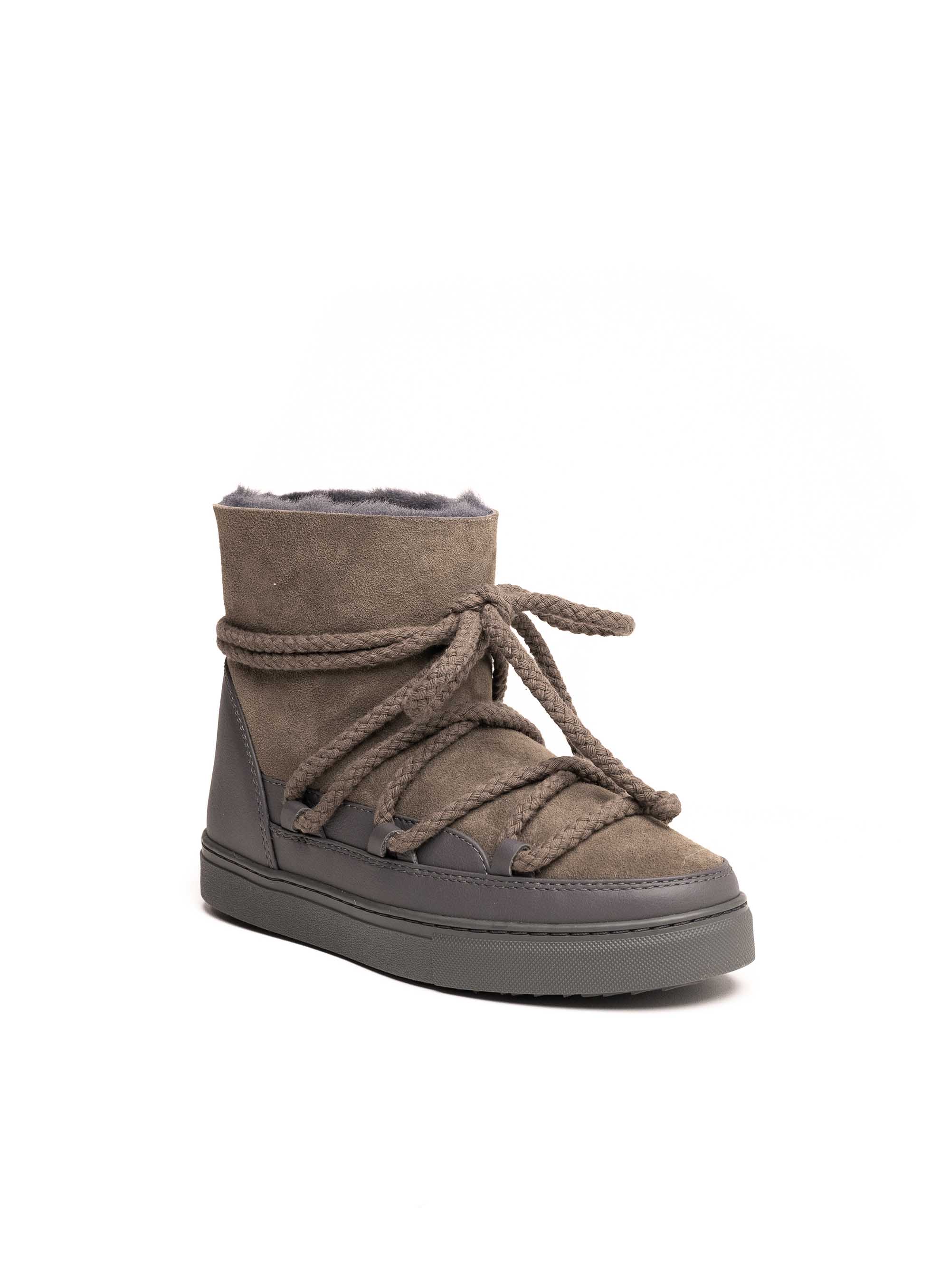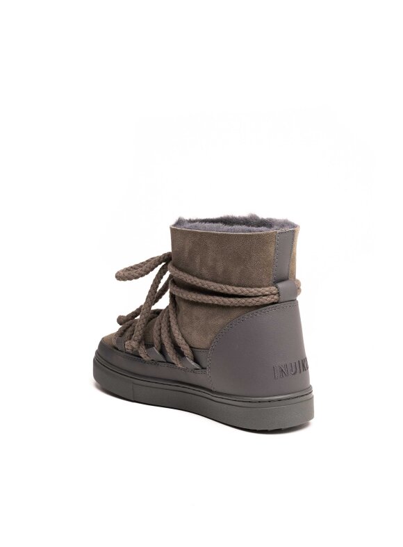 Inuikii gležnjače u sivoj boji izrađene su vrhunske kože, savršene za hladne zimske dane. Njihov prepoznatljiv dizajn s omotanim vezicama osigurava moderan izgled i dodatnu stabilnost. Unutrašnjost je podstavljena toplom prirodnom vunom, pružajući maksimalnu udobnost i zaštitu od hladnoće. Gumeni potplat osigurava dobro prianjanje i dugotrajnost. Idealne za svakodnevno nošenje, ove Inuikii čizme spajaju funkcionalnost i luksuzan dizajn.