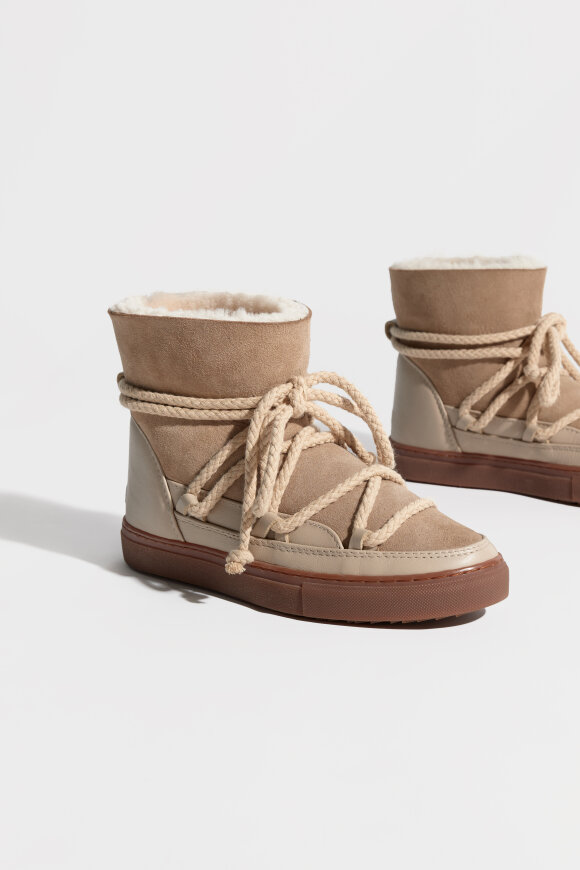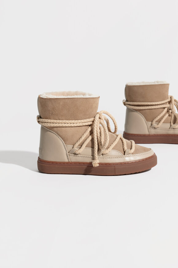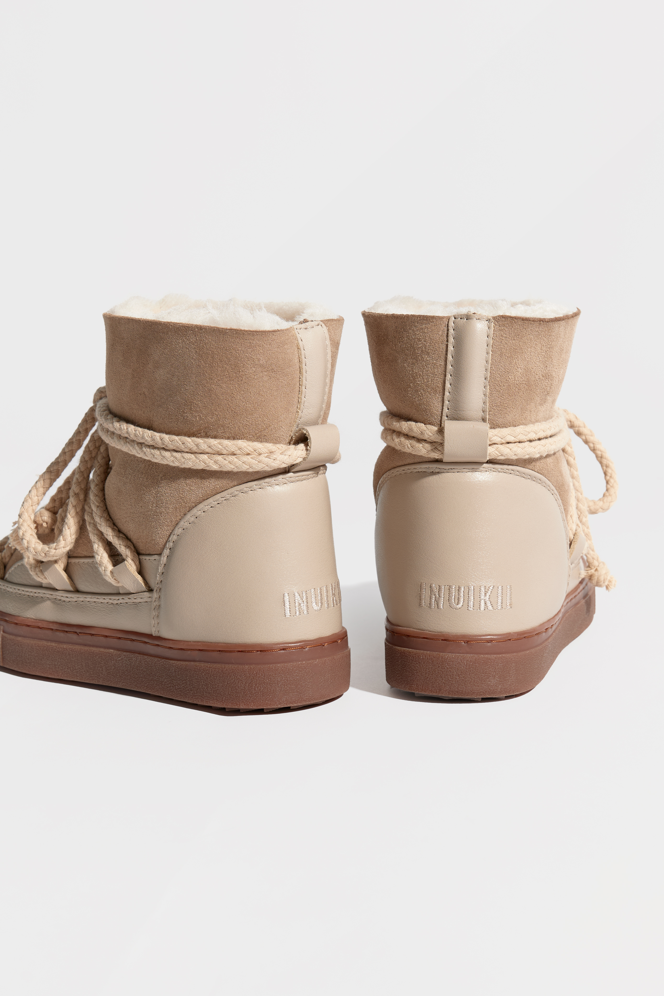 Inuikii ženske gležnjače u bež nijansi spoj su luksuza, udobnosti i funkcionalnosti. Izrađene od kombinacije mekane kože s toplom unutrašnjom podstavom od vune koja pruža maksimalnu udobnost i zaštitu od hladnoće. Prepoznatljiv dizajn s karakterističnim vezicama i gumenim potplatom osigurava stabilnost i stil u svim zimskim uvjetima. Idealne za svakodnevne modne kombinacije tijekom hladnijih dana.