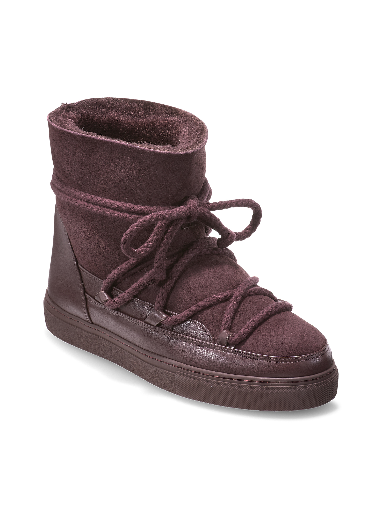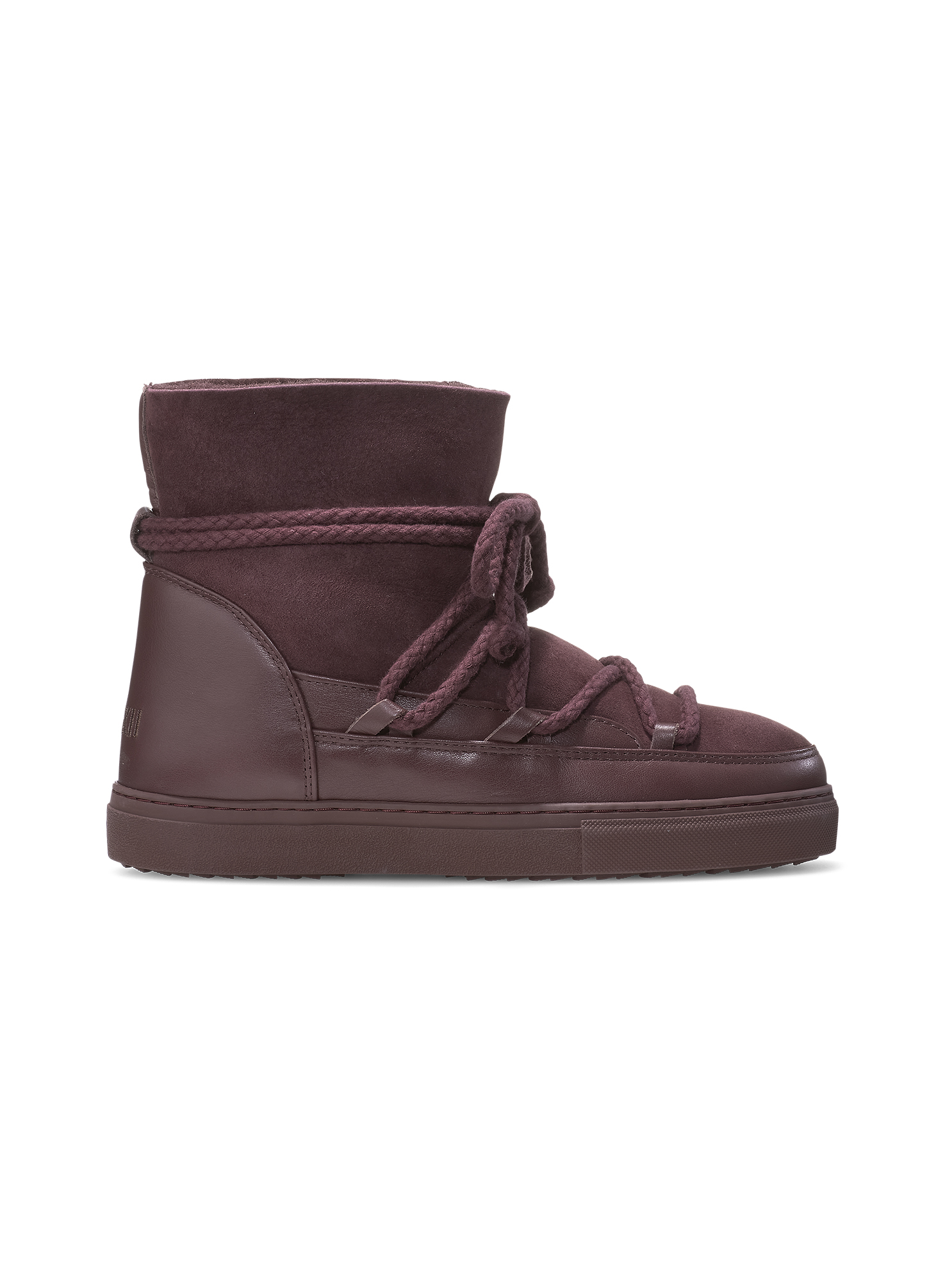 Ove Inuikii gležnjače u bordo boji kombiniraju bezvremenski stil i vrhunsku udobnost, savršene za hladne zimske dane. Izrađene od kombinacije kože i brušene kože, pružaju luksuzan izgled i otpornost na svakodnevno nošenje. Unutrašnjost je obložena toplom prirodnom vunom koja osigurava udobnost i zaštitu od hladnoće. Prepoznatljiv Inuikii dizajn s upečatljivim vezicama donosi urban i moderan karakter, dok čvrst, protuklizni gumeni potplat omogućava sigurnost i stabilnost na svim podlogama.