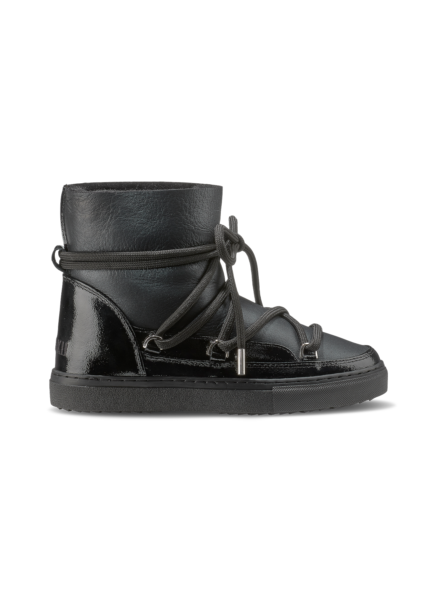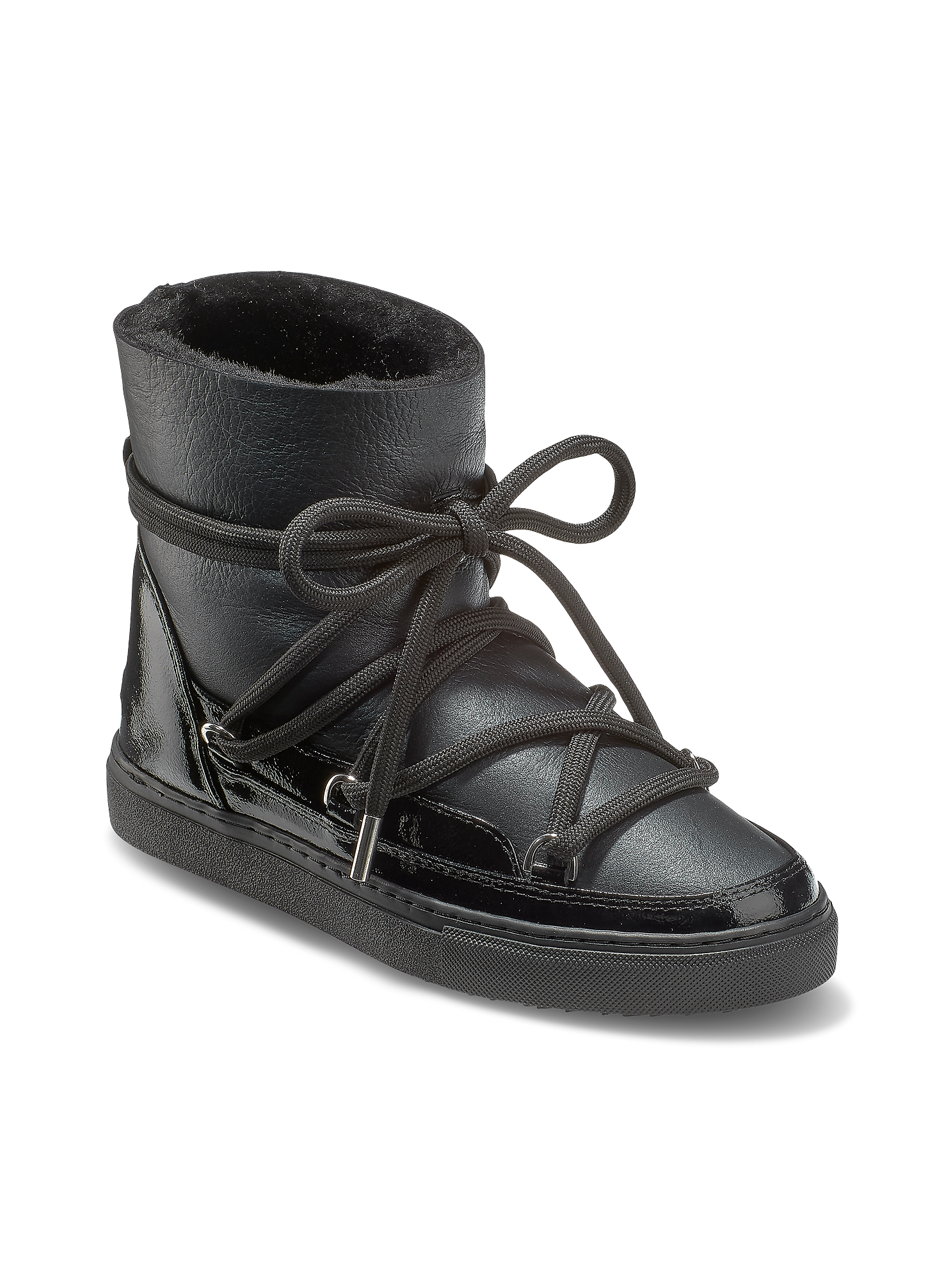 Podignite svoj zimski stil uz Inuikii crne ženske gležnjače izrađene od kombinacije glatke i lakirane kože. Elegantan dizajn s prepoznatljivim vezicama daje im urban i moderan izgled, dok unutrašnjost obložena prirodnom vunom pruža toplinu i udobnost tijekom hladnih dana. Robustan gumeni potplat osigurava stabilnost i dugotrajnost, čineći ih savršenim izborom za gradsku eleganciju i casual kombinacije.