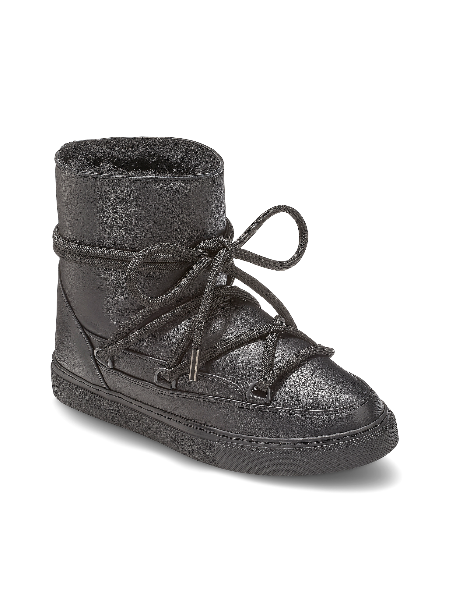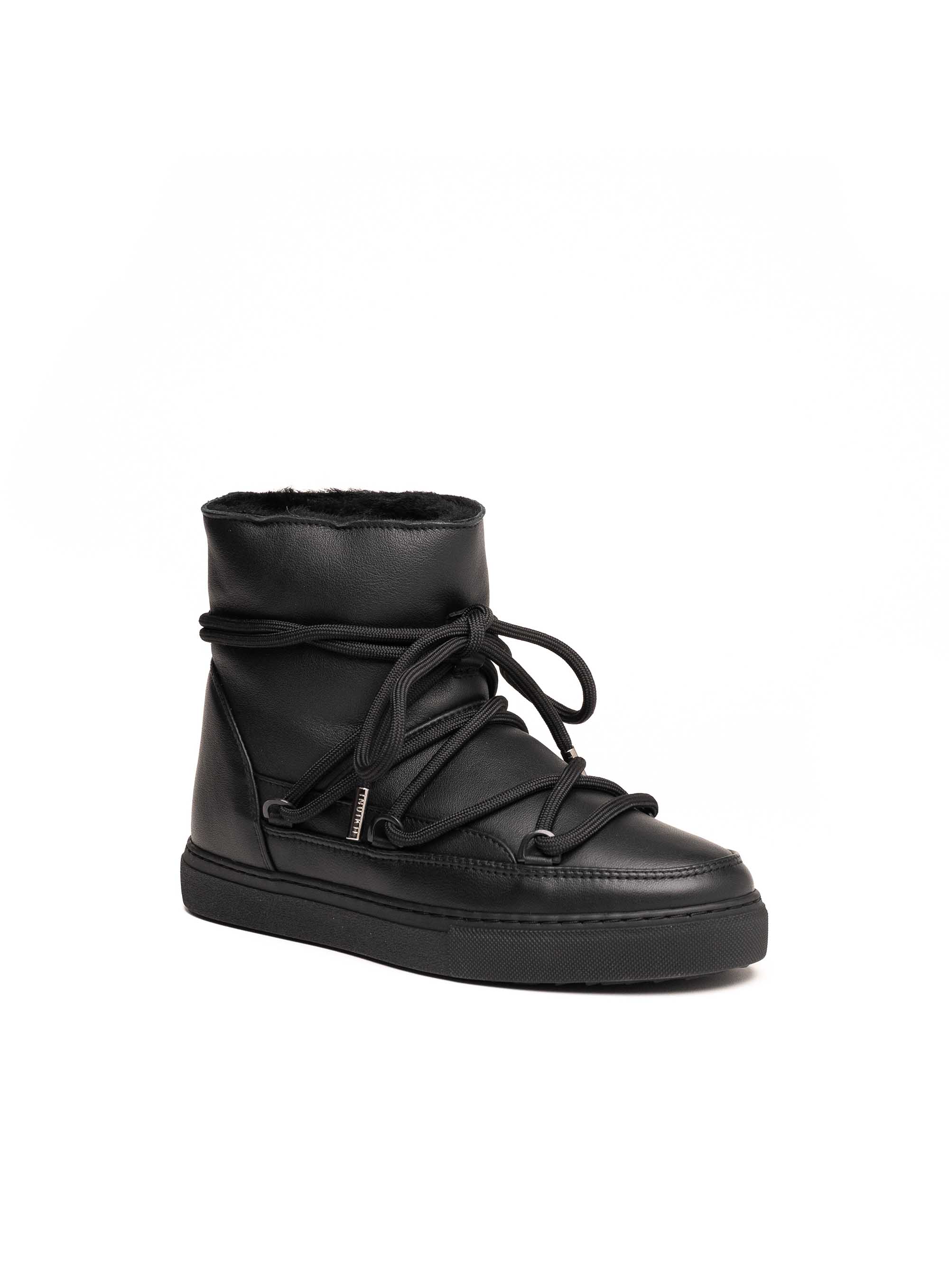 Inuikii crne gležnjače savršene su za žene koje traže spoj stila, topline i udobnosti. Izrađene od visokokvalitetne kože, obložene mekanom vunom iznutra, ove čizme osiguravaju vrhunsku zaštitu tijekom hladnih zimskih dana. Prepoznatljiv dizajn s upletenim vezicama daje im moderan i urban izgled, dok gumeni potplat pruža stabilnost i trajnost. Idealne su za svakodnevno nošenje, od casual kombinacija do trendovskih zimskih outfita.