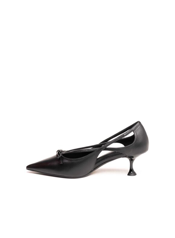 Lola Cruz crne cipele odišu elegancijom i modernim dizajnom. Izrađene od kvalitetne kože, ističu se profinjenim linijama, niskom potpeticom i dekorativnim remenčićima koji daju poseban chic efekt. Mala mašna sprijeda dodaje ženstven i sofisticiran detalj, dok praktična visina pete osigurava udobnost tijekom cijelog dana.