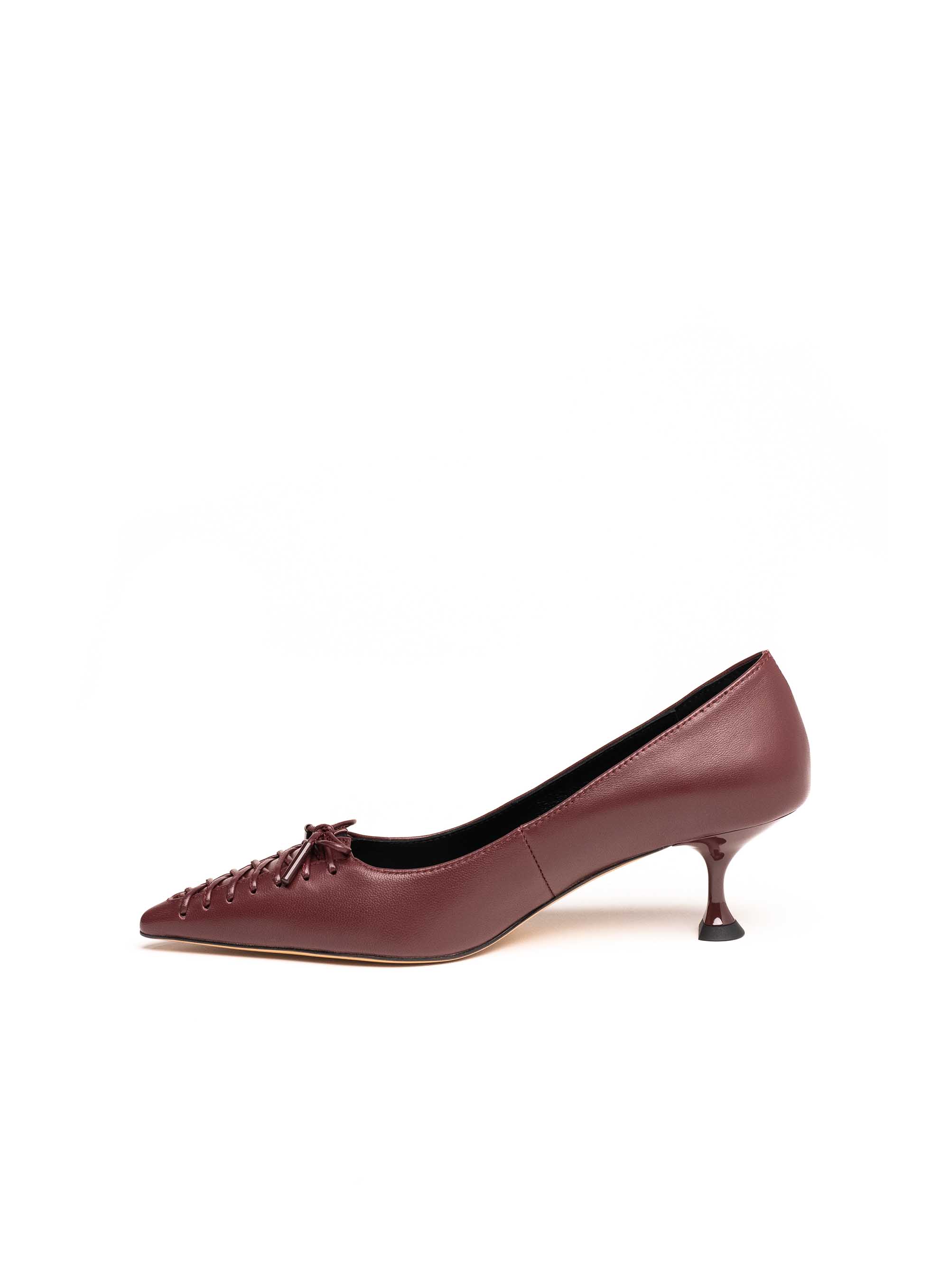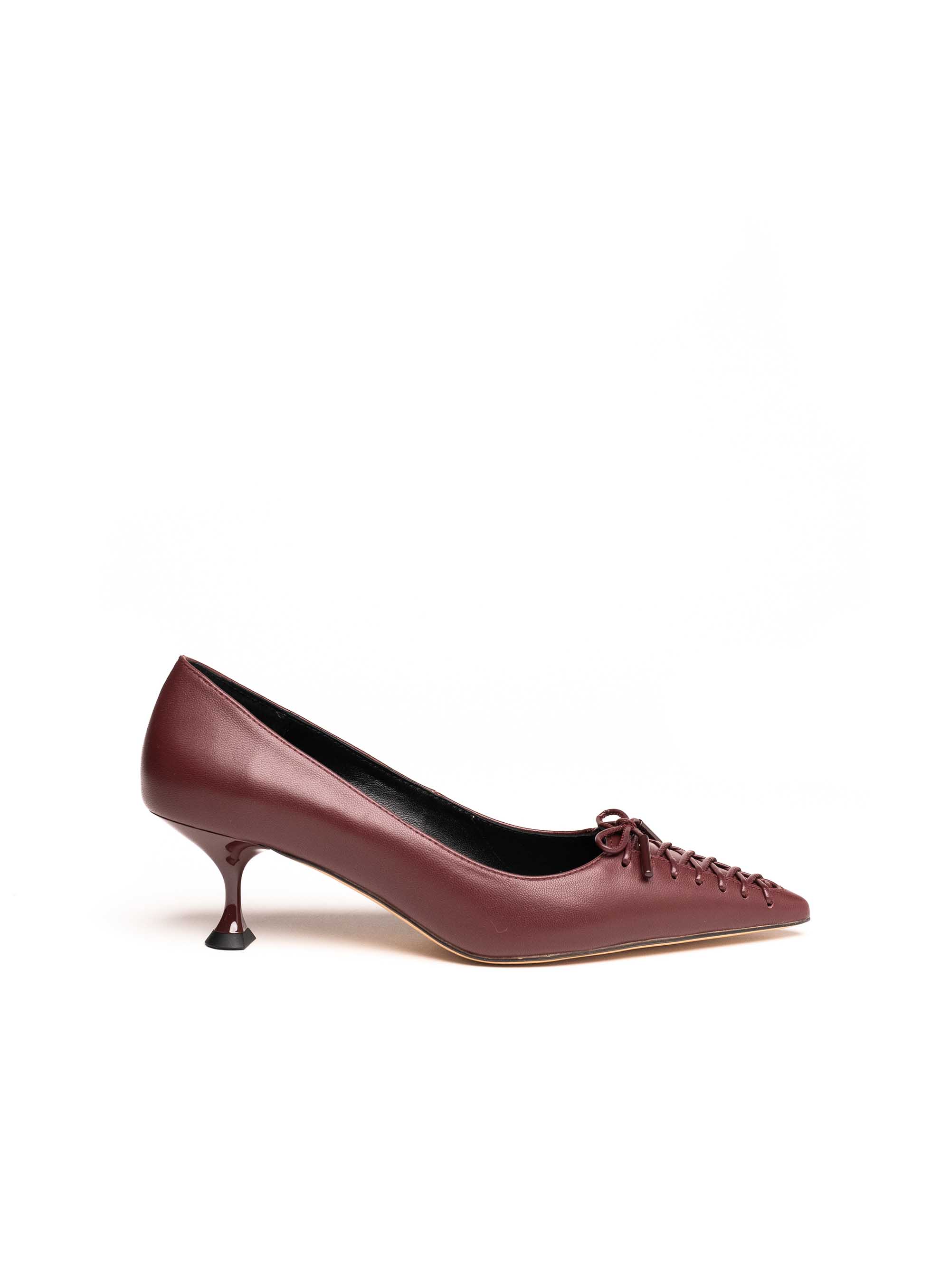 Elegantna Lola Cruz salonka u bordo boji izrađena je od kvalitetne kože s decentnim vezicama sprijeda koje joj daju moderan i sofisticiran izgled. Model s uskim vrhom i udobnom kitten petom pruža savršenu ravnotežu između elegancije i praktičnosti. Idealna za poslovne i večernje kombinacije, ova cipela unijet će dašak luksuza i profinjenosti u svaku garderobu.