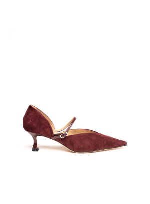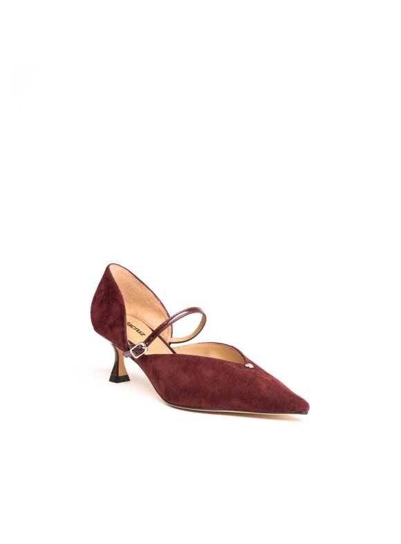 Lola Cruz bordo salonke od brušene kože odišu elegancijom i ženstvenošću. Model je izrađen od mekane brušene kože s lakiranim remenčićem preko rista koji pruža dodatnu stabilnost i profinjen izgled. Niska kitten peta osigurava udobnost tijekom cijelog dana, dok moderan dizajn čini ovu cipelu savršenim izborom i za poslovne kombinacije i za večernje prilike.