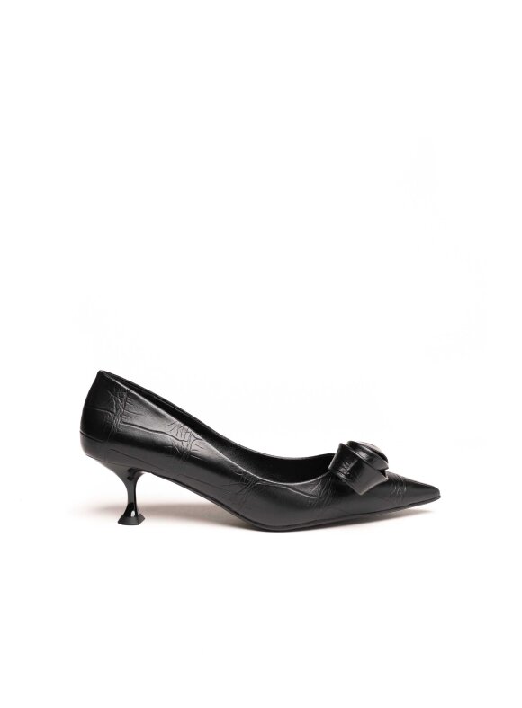 Izrađene od kvalitetne kože s decentnim reljefnim uzorkom, ove cipele ističu se profinjenim izgledom i dekorativnom mašnom na prednjem dijelu.