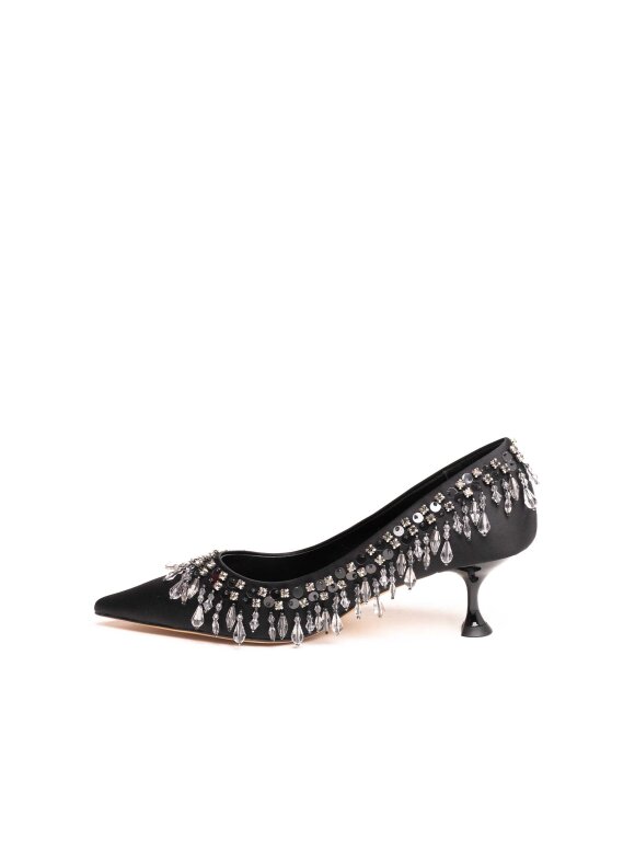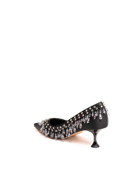 Lola Cruz crne salonke s kristalnim aplikacijama donose savršen spoj glamura, ženstvenosti i luksuznog dizajna. Izrađene od visokokvalitetnih materijala, ove elegantne cipele ukrašene su nizom kristala i kamenčića koji blistaju pri svakom koraku, stvarajući efekt raskošnog nakita na obući.Špicasti vrh daje sofisticiran izgled i vizualno izdužuje nogu, dok niska kitten peta pruža stabilnost i udobnost, čineći ih idealnim izborom za svečane prigode u kojima želite izgledati elegantno, a pritom se osjećati ugodno. Ovaj model odiše suvremenim luksuzom i lako se uklapa u večernje i koktel kombinacije – bilo uz dugu elegantnu haljinu, midi suknju ili chic odijelo.Lola Cruz potpisuje ove salonke kao statement komad obuće koji plijeni pažnju i unosi dozu glamura u svaku garderobu. Bez obzira nosite li ih na svečane događaje, vjenčanja ili ekskluzivne večernje izlaske, one će uvijek naglasiti vaš stil i eleganciju.