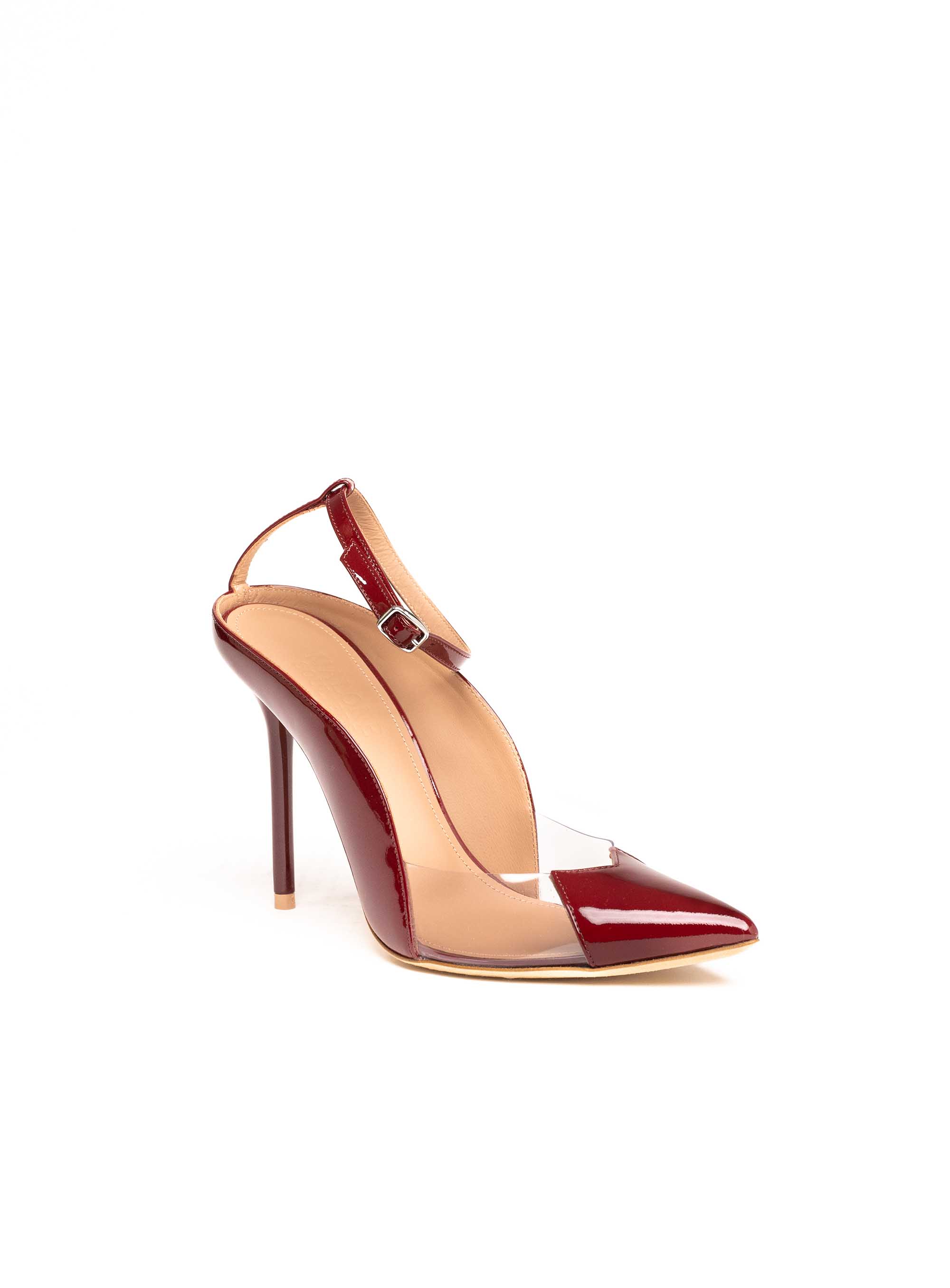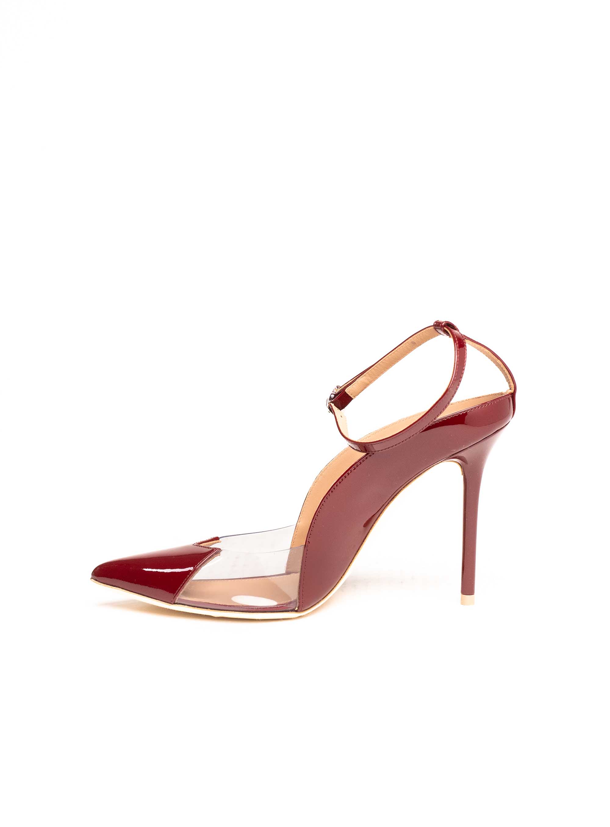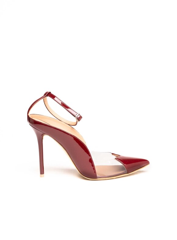 Malone Souliers crvene salonke s PVC detaljima savršeno utjelovljuju spoj luksuza, sofisticiranosti i modernog dizajna. Izrađene od lakirane kože u elegantnoj burgundy/crvenoj nijansi u kombinaciji s prozirnim PVC umetkom, ove cipele donose efekt pročišćene elegancije i vizualno izdužuju nogu. Špicasti vrh naglašava ženstvenost, dok tanka visoka peta daje stav i glamur.Narukvica oko gležnja s decentnom metalnom kopčom osigurava stabilnost i udobnost, a istovremeno dodaje profinjen detalj. Ovaj model idealan je za večernje prilike, svečane događaje i modne kombinacije koje zahtijevaju upečatljiv statement komad. Zahvaljujući svojoj svestranosti, crvene salonke lako se kombiniraju s elegantnim haljinama, suknjama ili chic odijelima, unoseći luksuznu notu u svaku kombinaciju.Malone Souliers poznat je po inovativnom dizajnu i vrhunskoj izradi, a ove salonke predstavljaju investiciju u obuću koja traje, pruža udobnost i naglašava jedinstven osobni stil.