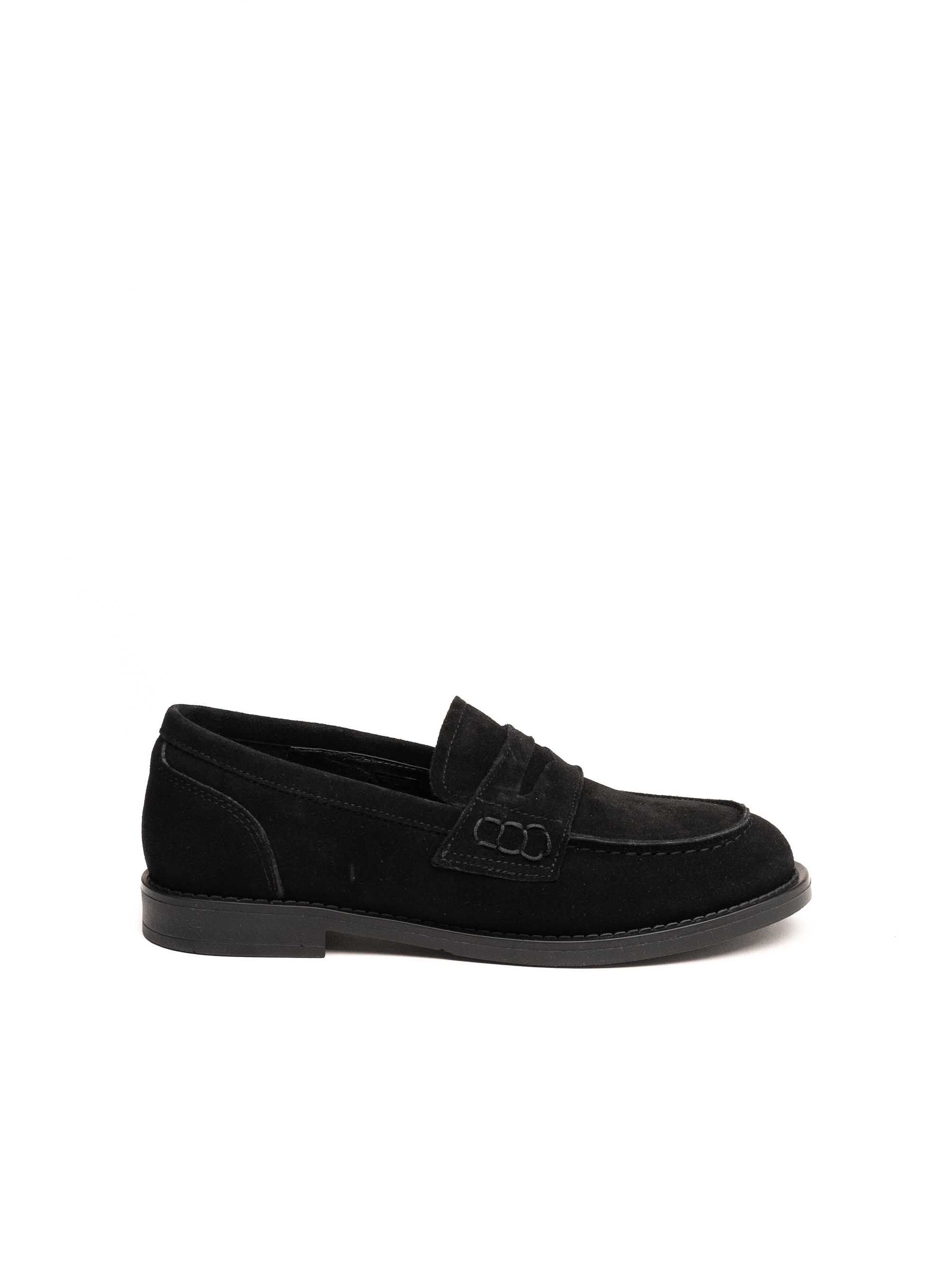 Elegantne ženske mokasine izrađene su od kvalitetne brušene kože u klasičnoj crnoj boji. Ovaj bezvremenski model spaja udobnost i sofisticiran izgled, čineći ga savršenim izborom za svakodnevno nošenje, poslovne prilike ili ležerne outfite.