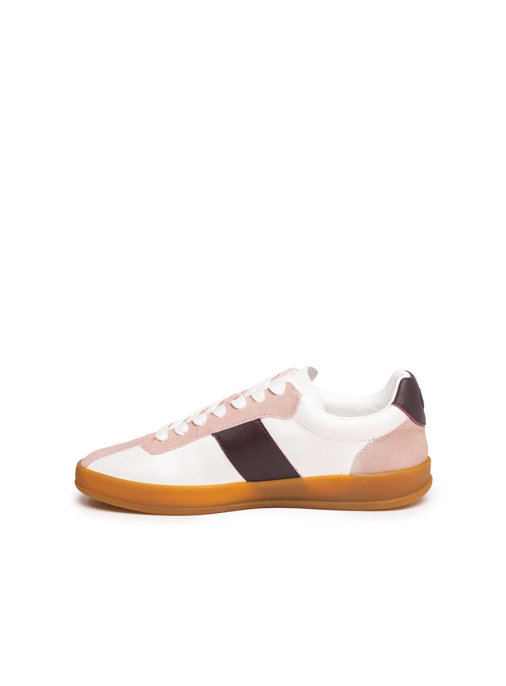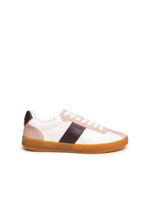 Udobnost i stil u savršenom spoju – Pollini ženske tenisice donose prepoznatljiv talijanski dizajn u modernoj kombinaciji bijele, ružičaste i tamnosmeđe boje. Izrađene su od kvalitetne kože i brušene kože, s gumiranim potplatom u boji karamele koji osigurava stabilnost i dugotrajnost.