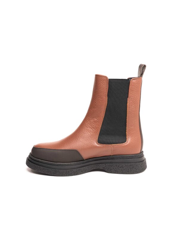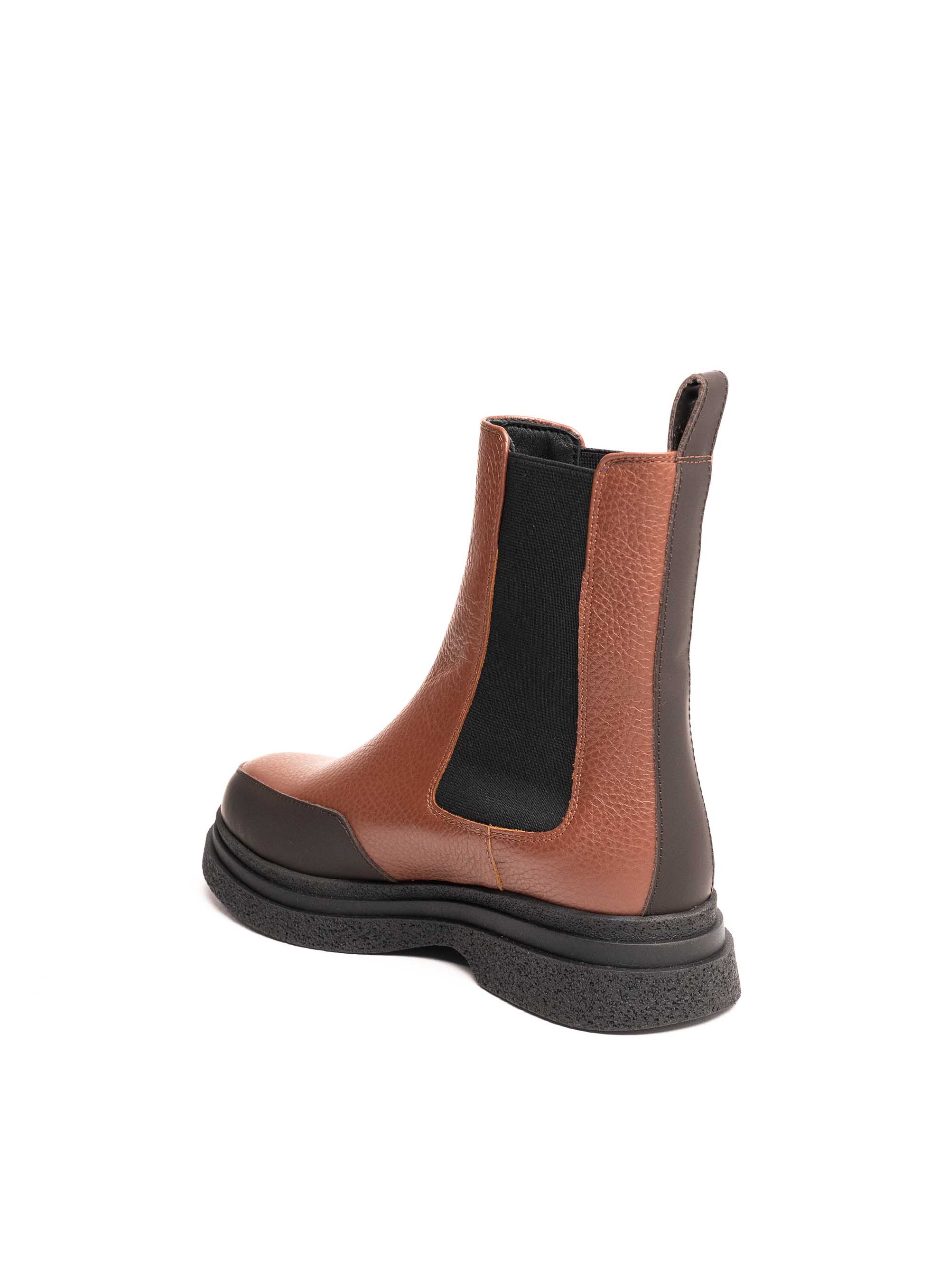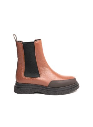 Moderne i praktične Chelsea gležnjače brenda Pollini, izrađene od prirodne kože s prepoznatljivom teksturom. Kombinacija smeđe kože i crnih elastičnih umetaka omogućuje lako obuvanje i pruža savršeno pristajanje. Robusni gumeni potplat osigurava stabilnost i udobnost pri svakodnevnom nošenju, a elegantan dizajn čini ih idealnim izborom za urbane i casual kombinacije.