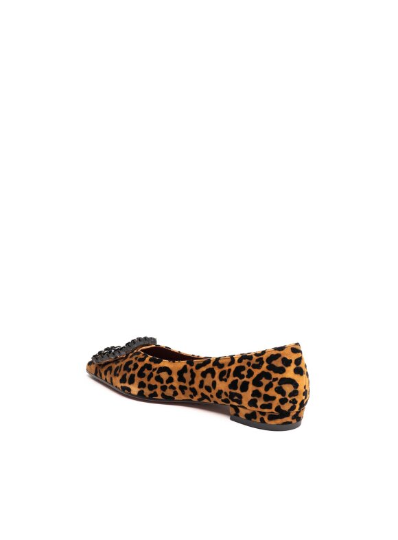Odvažne, elegantne i ženstvene — ove Roberto Festa balerinke izrađene su od luksuzne brušene kože s upečatljivim uzorkom. Na prednjem dijelu krasi ih ukrasna kopča s crnim kristalima, koja dodaje sofisticiran i glamurozan dodir. Zahvaljujući niskoj peti i udobnom kožnom ulošku, ove balerinke pružaju savršenu kombinaciju stila i udobnosti. Idealne su za žene koje žele istaknuti svoj osobni stil u svakoj prigodi.