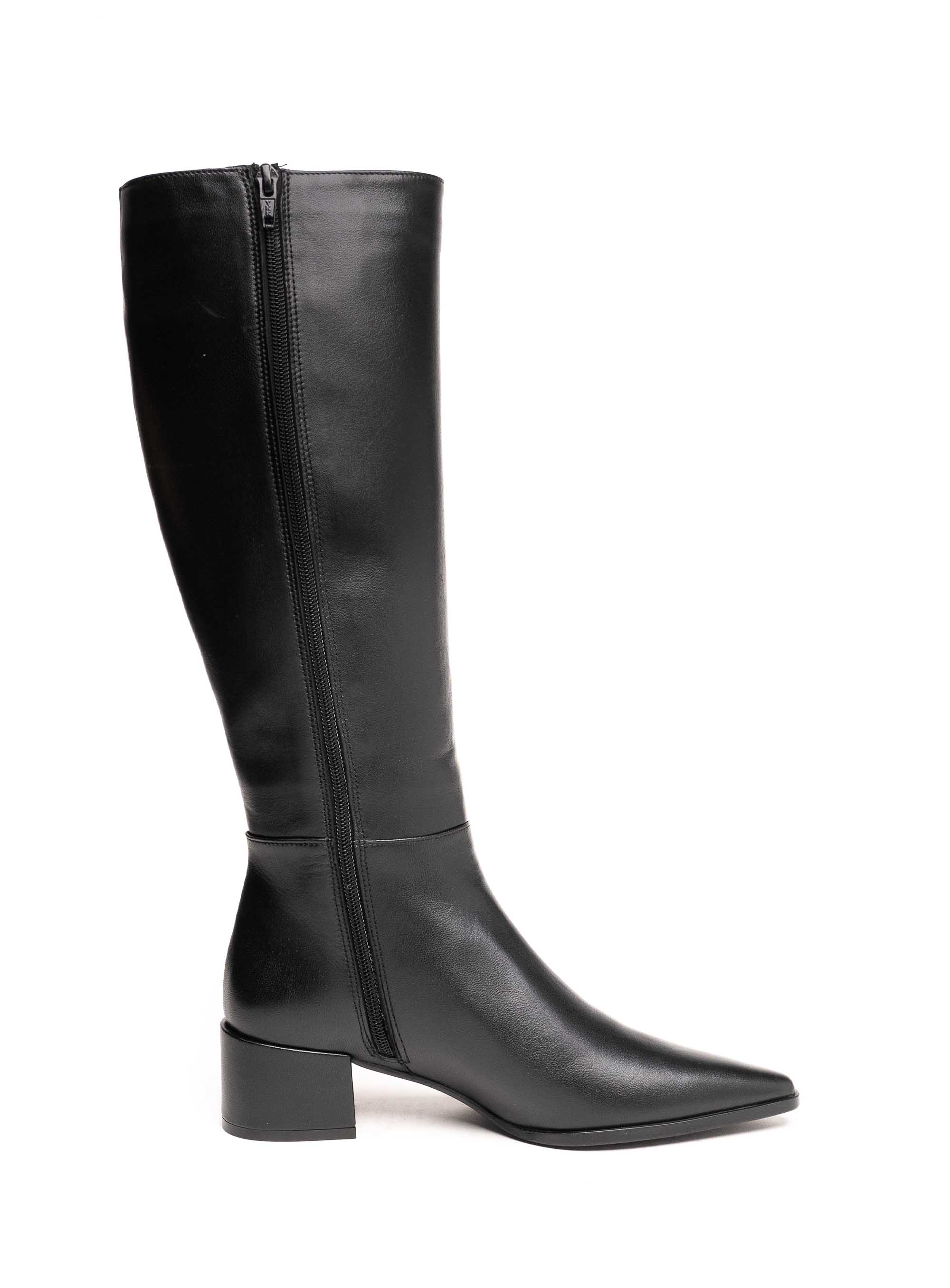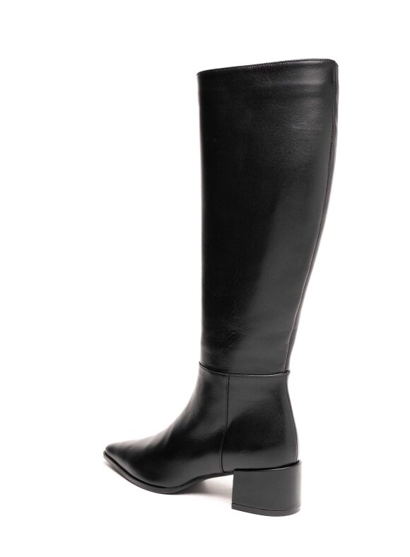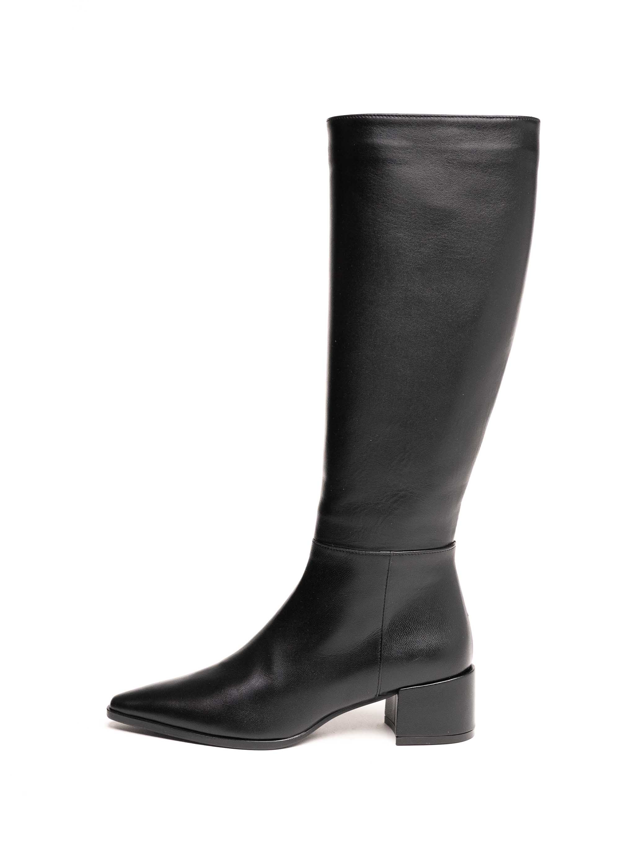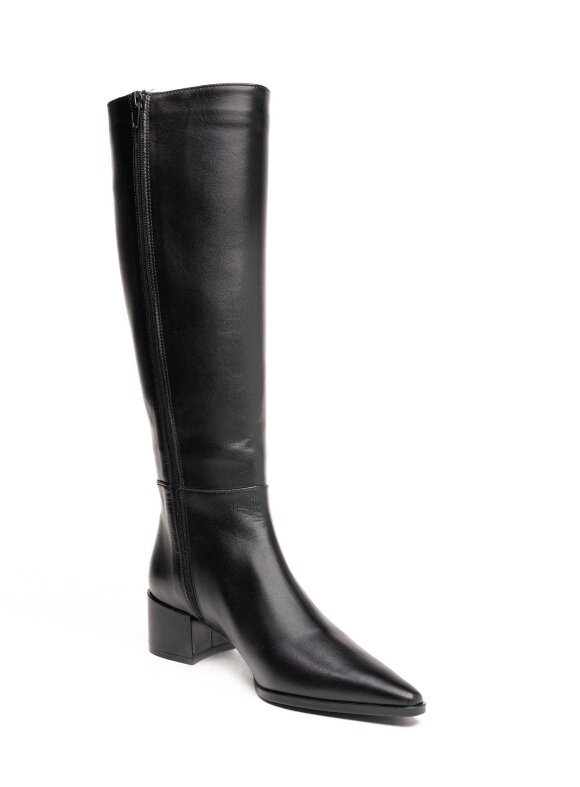 Elegantne i bezvremenske čizme brenda Roberto Festa izrađene su od visokokvalitetne glatke kože u klasičnoj crnoj boji. Moderan, minimalistički dizajn naglašen je čistim linijama i stabilnom blok petom koja pruža udobnost tijekom cjelodnevnog nošenja. Zatvaranje na patentni zatvarač s unutarnje strane osigurava jednostavno obuvanje, dok profinjena silueta ovih čizama dodaje notu sofisticiranosti svakom outfitu. Savršen izbor za poslovne, casual i večernje kombinacije.