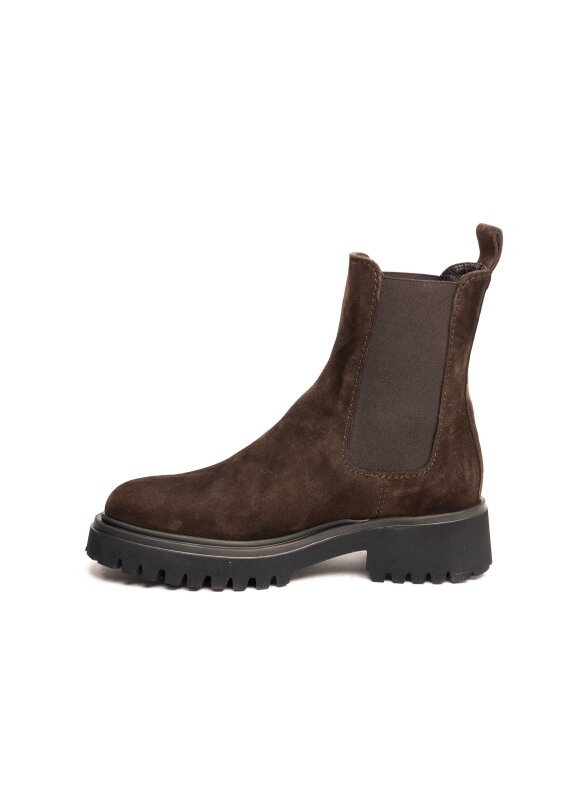 Ove elegantne Guglielmo Rotta gležnjače izrađene su od mekane brušene kože u toploj smeđoj nijansi koja donosi dozu sofisticiranosti i lako se kombinira s raznim odjevnim stilovima. Model inspiriran Chelsea dizajnom odlikuje se elastičnim bočnim umetcima koji omogućuju lako obuvanje i savršeno prianjanje uz nogu.