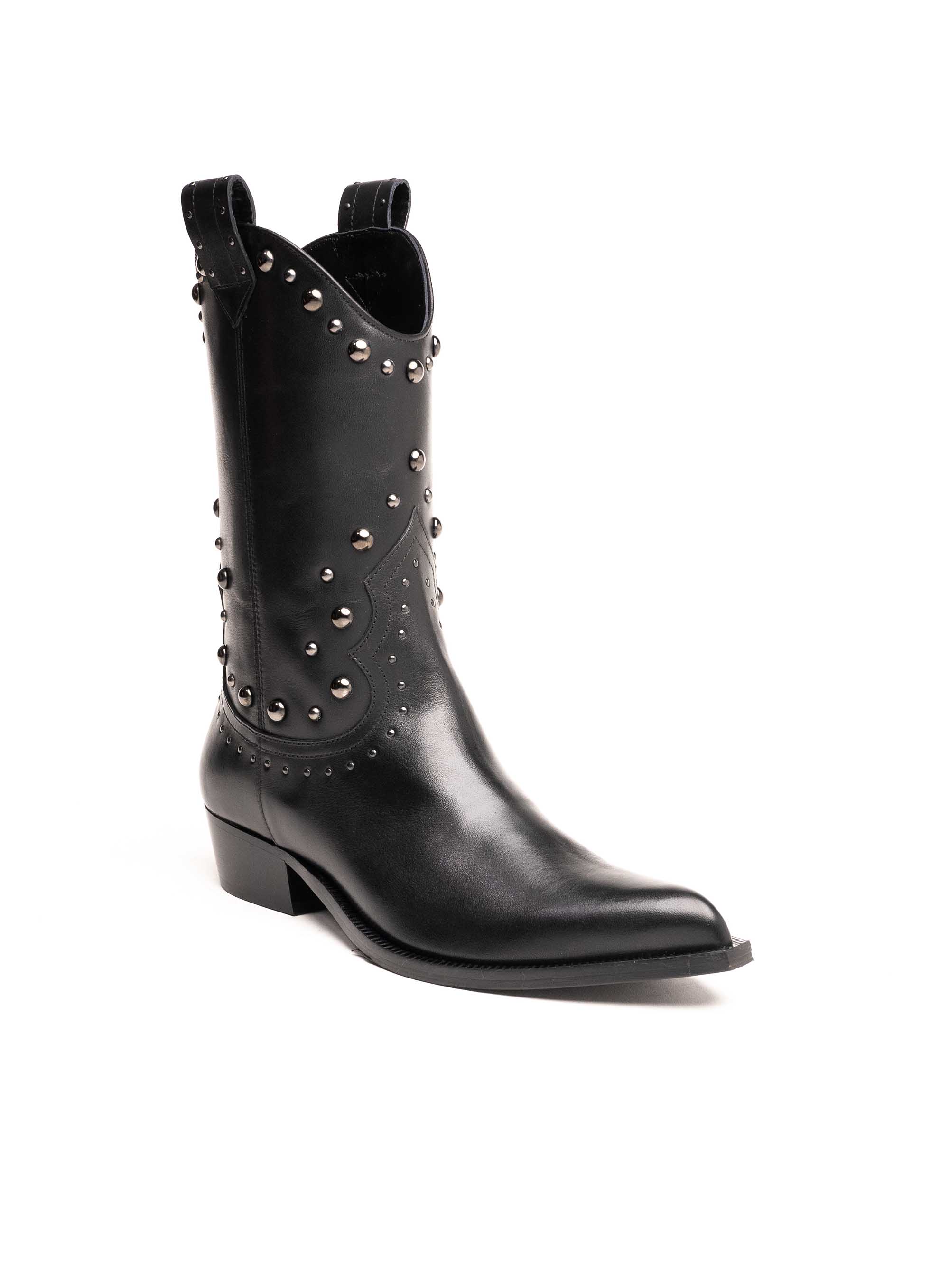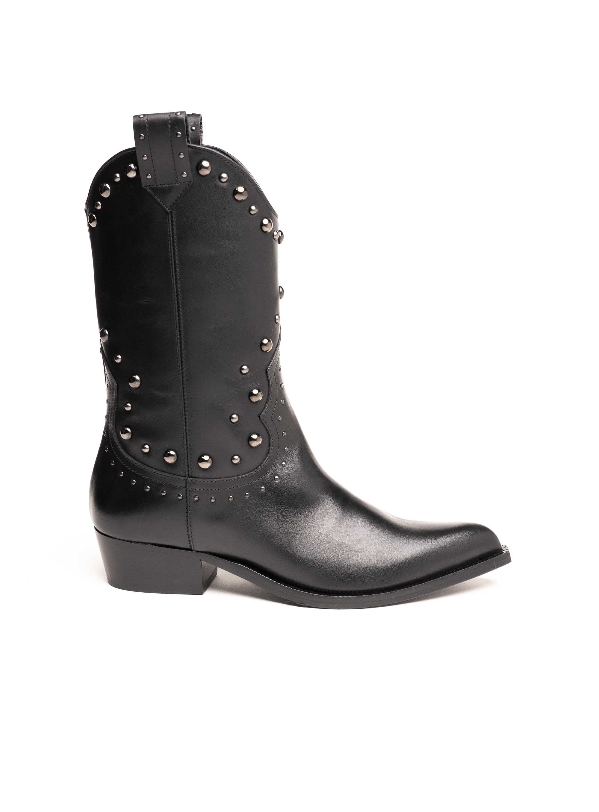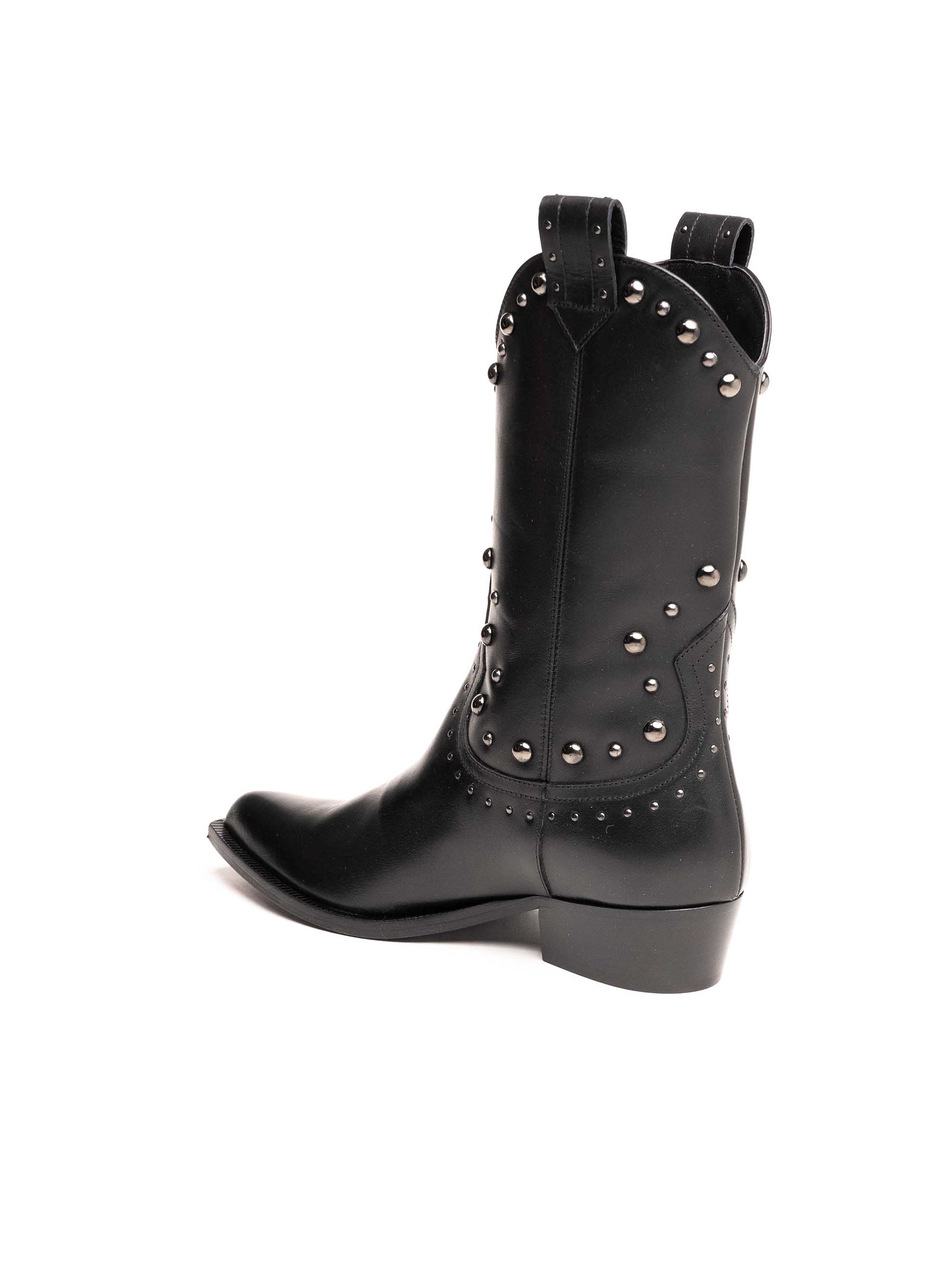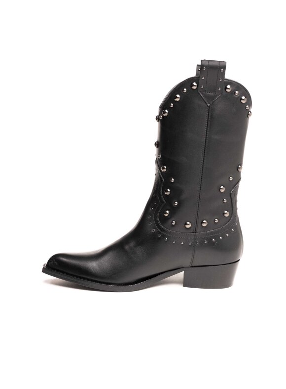 Istaknite svoj stil uz upečatljive Guglielmo Rotta čizme izrađene od visokokvalitetne prirodne kože u klasičnoj crnoj boji. Inspirirane kaubojskim modelom, ove čizme krasi prepoznatljiva silueta s blago zakošenom petom i ukrasnim metalnim nitnama koje donose moderan “rock chic” izgled.