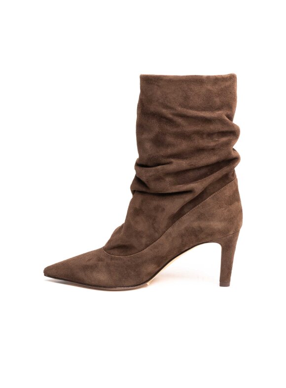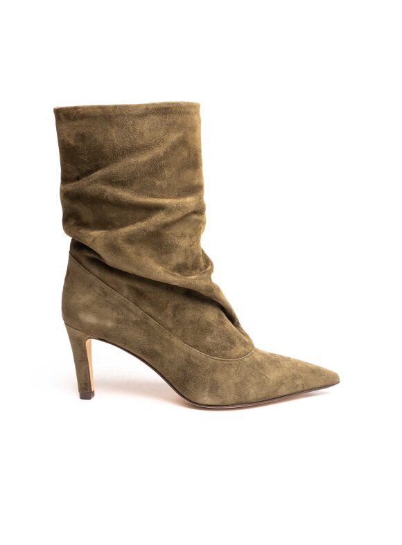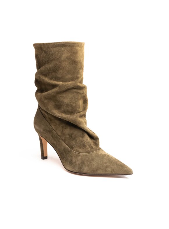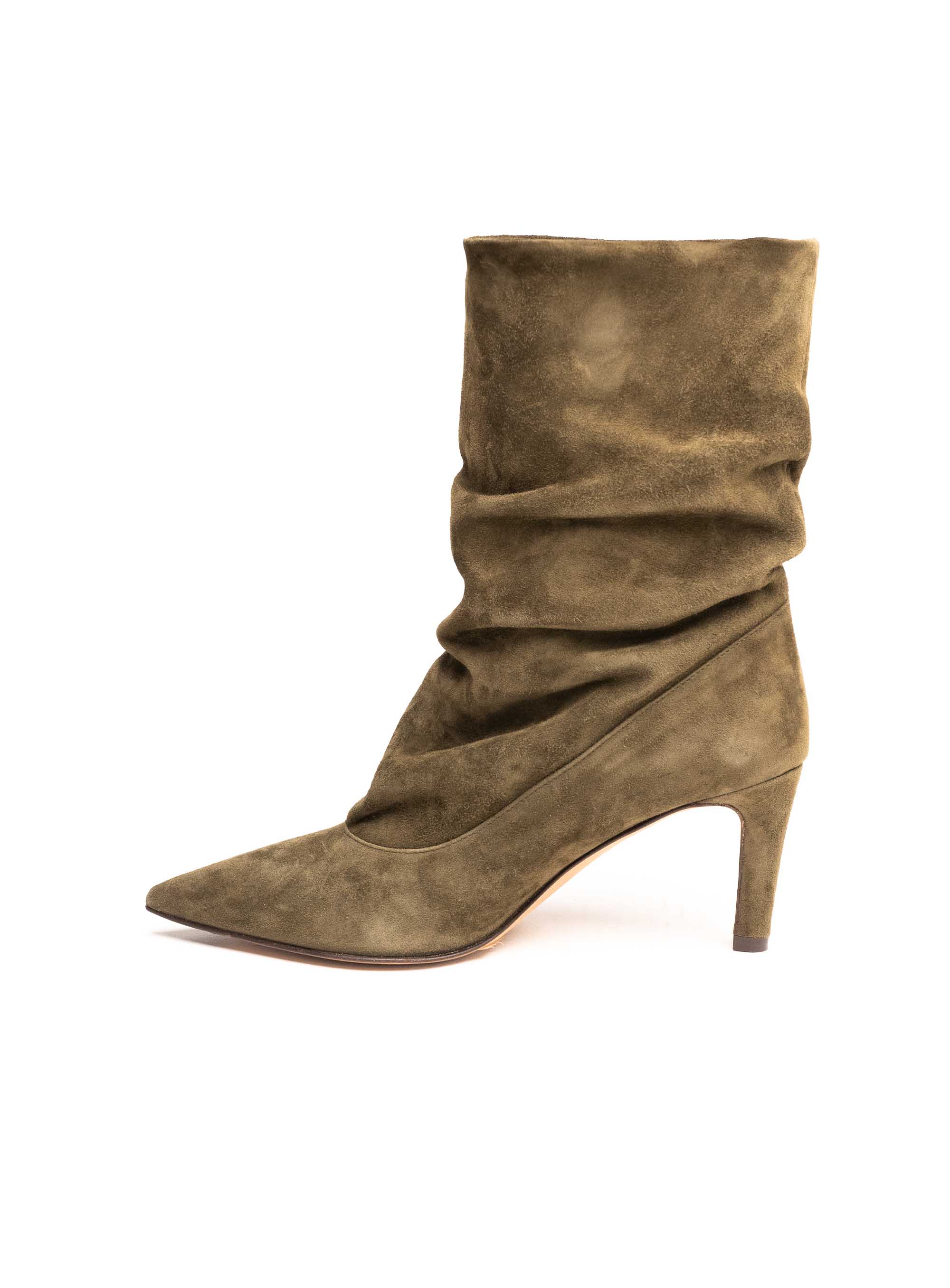 Anima gležnjače od brušene kože u maslinastozelenoj boji donose savršen spoj sofisticiranosti i udobnosti. Sa ženstvenom siluetom, špicastim vrhom i stabilnom potpeticom srednje visine, ove čizme ističu eleganciju u svakoj kombinaciji. Mekani antilop materijal i lagano nabrani dizajn daju modernu, ali bezvremensku notu. Idealne za jesenske i zimske outfite – od dnevnih casual kombinacija do večernjih izlazaka.