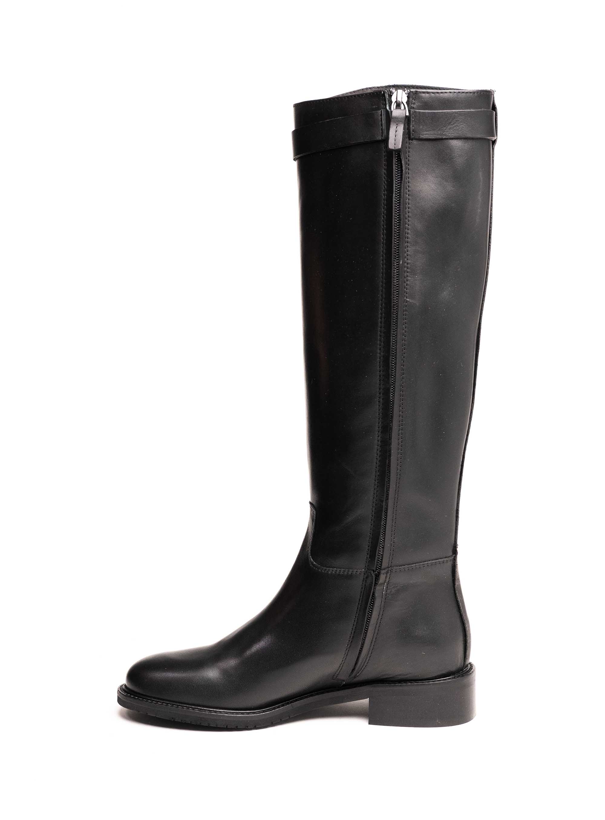 Crne ženske kožne čizme Paramount Store kolekcije predstavljaju bezvremenski komad luksuzne obuće koji spaja eleganciju, udobnost i vrhunsku kvalitetu izrade. Izrađene od 100% prirodne glatke kože, ove čizme do koljena odišu sofisticiranošću i profinjenošću. Klasičan dizajn naglašen je decentnim kožnim remenom s metalnom kopčom, što daje diskretan, ali prepoznatljiv modni detalj.