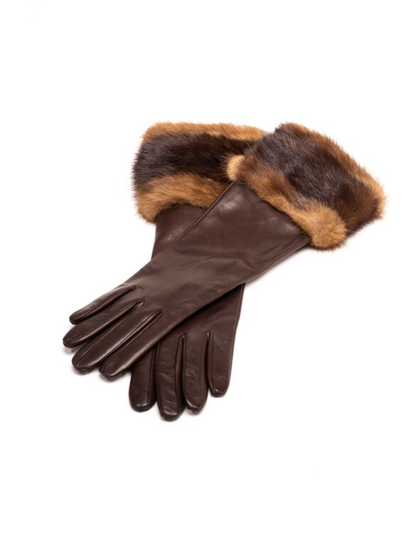Istaknite svoj stil uz Sofia Gants duge ženske rukavice izrađene od fine prirodne kože s luksuznim detaljem od krzna. Smeđa boja i bogato krzno na rubu čine ih savršenim izborom za dame koje žele eleganciju i toplinu u hladnim zimskim danima. Ove rukavice su spoj klasične ljepote, udobnosti i profinjenosti – idealne za svakodnevne i svečane prilike.