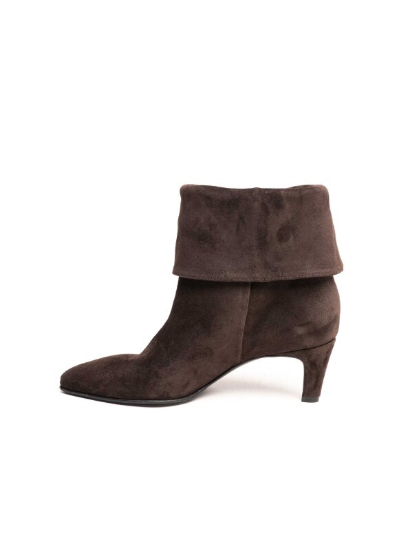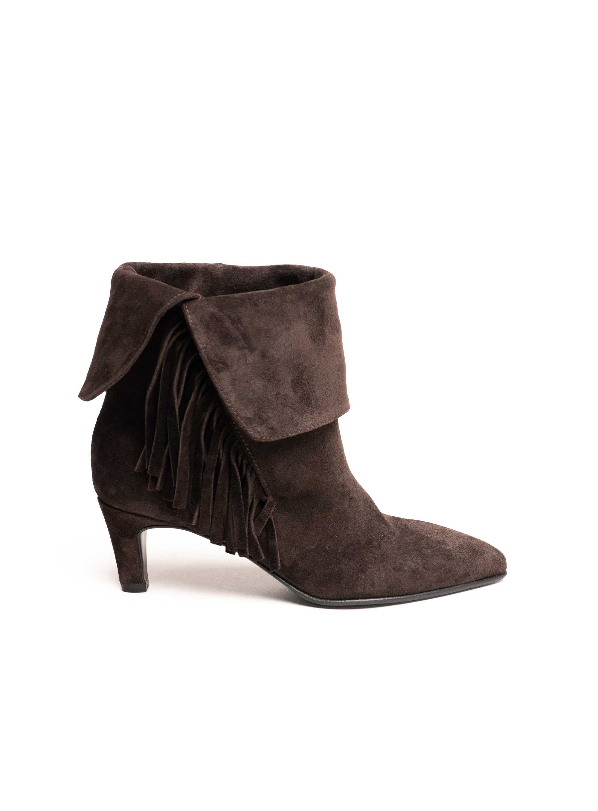Strategia smeđe gležnjače izrađene od brušene kože savršen su spoj luksuza, ženstvenosti i boho šarma. Ovaj model odlikuje se bogatom teksturom i efektnim resama koje daju dinamičan i moderan izgled. Preklopljeni gornji rub dodatno naglašava dizajnersku posebnost, dok špicasti vrh i elegantna srednje visoka potpetica vizualno izdužuju siluetu noge.Smeđa boja u toplom tonu čini ih idealnim izborom za jesensko-zimske kombinacije, a zahvaljujući resama i kroju, savršeno se uklapaju u urbane, chic ili casual outfite. Lako se kombiniraju s trapericama, suknjama i haljinama, dodajući svakoj kombinaciji notu autentičnog stila.Kao dio Strategia kolekcije, ove gležnjače izrađene su s posebnom pažnjom prema detaljima i kvaliteti, što jamči dugotrajnost, udobnost i prepoznatljiv talijanski dizajn. Ovaj model predstavlja pravi statement komad obuće koji privlači pažnju i daje dozu karaktera svakoj garderobi.