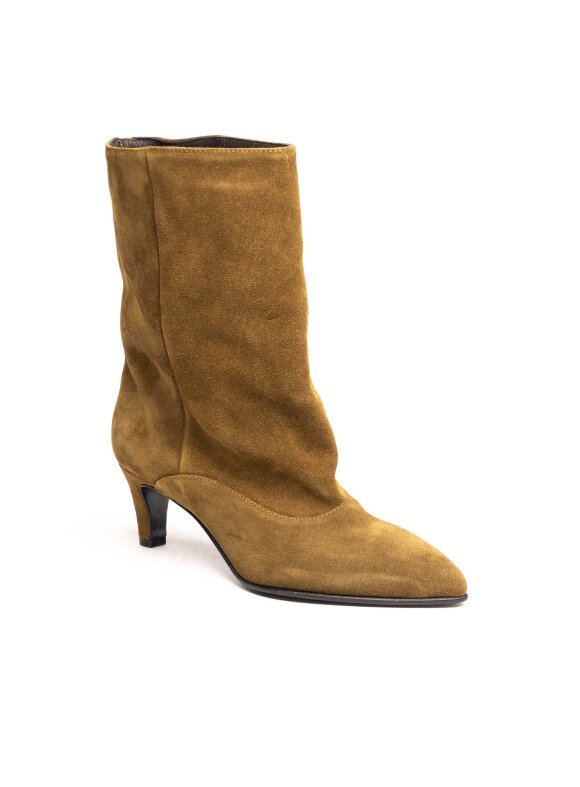Strategia smeđe gležnjače izrađene od brušene kože donose bezvremensku eleganciju i udobnost. Model s poludugom cijevi, špicastim vrhom i potpeticom srednje visine pruža profinjenu siluetu i praktičnost za svakodnevno nošenje. Topla nijansa smeđe boje lako se uklapa u različite jesenje i zimske kombinacije, čineći ih savršenim izborom za žene koje traže sofisticiran, a udoban komad obuće.