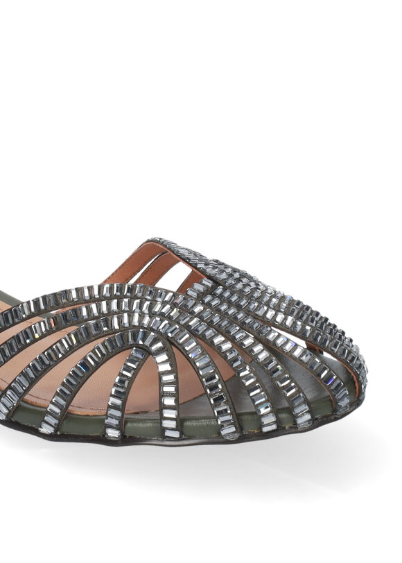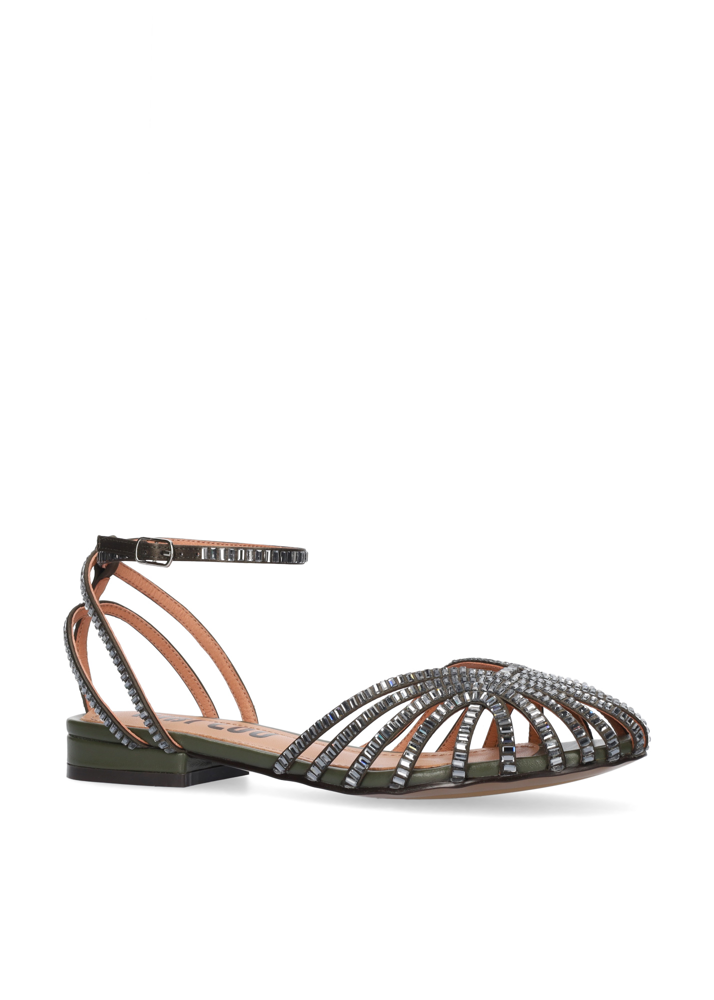 Bibi Lou sandale u maslinastoj nijansi ističu se elegantnim i modernim dizajnom s glamuroznim detaljima. Tanki remenčići ukrašeni sjajnim aplikacijama stvaraju efektan izgled i nježno prate liniju stopala. Podesivi remen oko gležnja omogućuje sigurno i udobno pristajanje, dok niski potplat pruža stabilnost i udobnost tijekom cijelog dana. Savršen model za večernje izlaske, posebne prigode ili elegantne ljetne kombinacije.