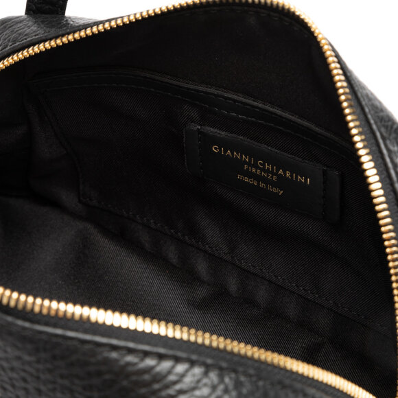 Elegantna Gianni Chiarini Firenze torba od kvalitetne zrnate kože u klasičnoj crnoj boji. Model s ručkama i odvojivim, podesivim remenom omogućuje nošenje u ruci, na ramenu ili kao crossbody. Praktična i bezvremenska – idealna za svakodnevne i poslovne kombinacije.
