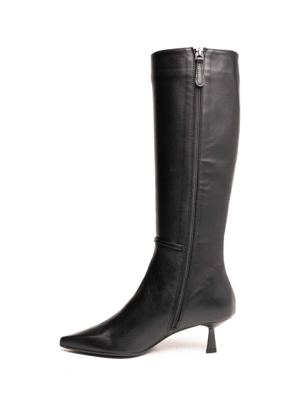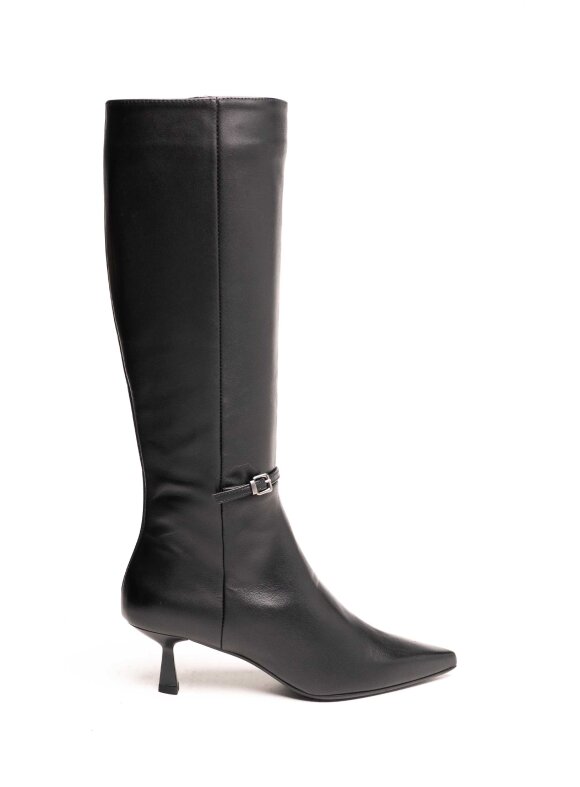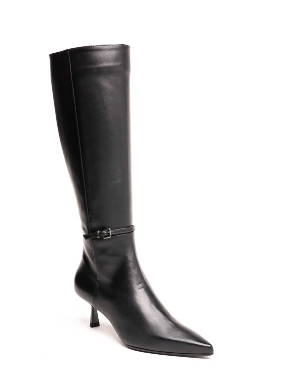 Elegantne i ženstvene visoke čizme izrađene od kvalitetne prirodne kože. Klasičan dizajn s tankom potpeticom naglašava sofisticiranost i izdužuje nogu. Tanka remen traka s diskretnom metalnom kopčom oko gležnja dodaje suptilan modni detalj. Zahvaljujući udobnom dizajnu i profinjenom izgledu, ove čizme idealne su za poslovne i svečane prilike.
