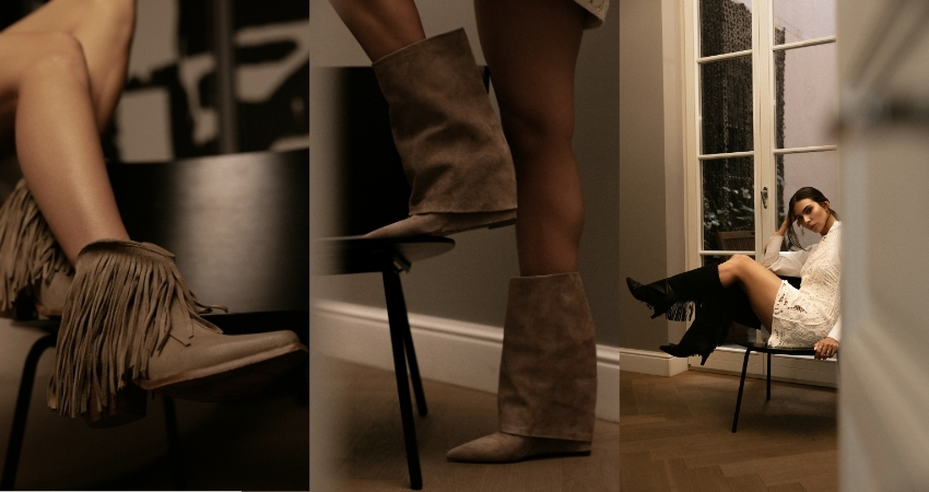 Čizme u bordo nijansama ističu se kao ključni komad sezone, dok modeli s resicama dodaju dinamiku i poseban karakter jesenskim kombinacijama. Brušena koža zauzima važno mjesto u kolekciji, donoseći mekoću i toplinu koja savršeno odgovara hladnijim danima.